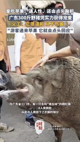 “太有灵性了!”广东江门,野猪受伤到观音寺求助,被救下后直接在附近安家,不仅常到寺里闲逛,遇到人还知道点头鞠躬。网友:“据说猪的智商很高的,比狗都高。” 这件事还得从2018年说起,当时这头野猪才一岁多,甚至还没有一只狗大。因为在山上踩中了“捕兽夹”,所以就跑到庙里找人帮忙。 本以为帮它取下来后它就会离开,没想到它像是认定了这里是个好地方,反而安家不走了。 平时没事它就到庙里闲逛,一开始来来往往的人看到它都有点害怕,可慢慢发现它不仅不攻击人,反而还很温顺,甚至用手摸它脑袋都可以,于是就有人大着胆子喂它苹果。 寺庙还给它起了个名字,就叫它猪五妹,现在猪五妹早就成了观音庙的一个“象征”,凡是来这里的游客基本都见过它。 五妹不仅对人脾气很好,对其它动物也非常温顺。庙里养的一只鸡就和它成了好朋友,它们一起吃饭,一起散步,看着别提有多温馨了。 有人说,这猪真的是通人性了。 也有人说,好可惜啊,为什么我上次去没有看到。 还有人说,庙里供吃供喝,我要是它我也不走了! 一般来讲,野生的动物多少都会有点“野性”,猪五妹确实是比较“奇特”。有研究动物的专家就觉得,猪五妹可能是家猪和野猪混合的产物,所以性格相对比较温顺,这才能跟“人”玩到一起去。 你觉得专家这个解释有道理吗?