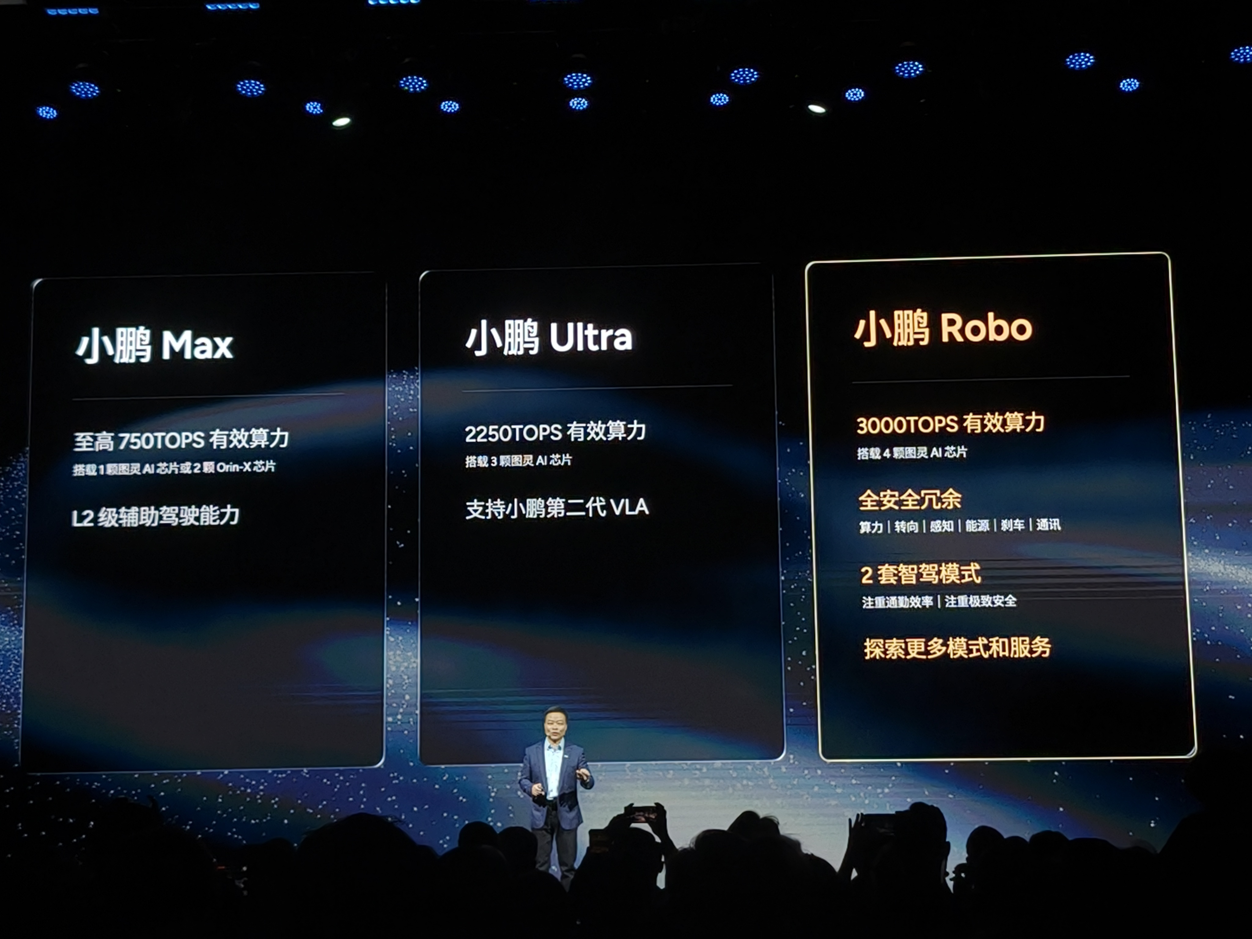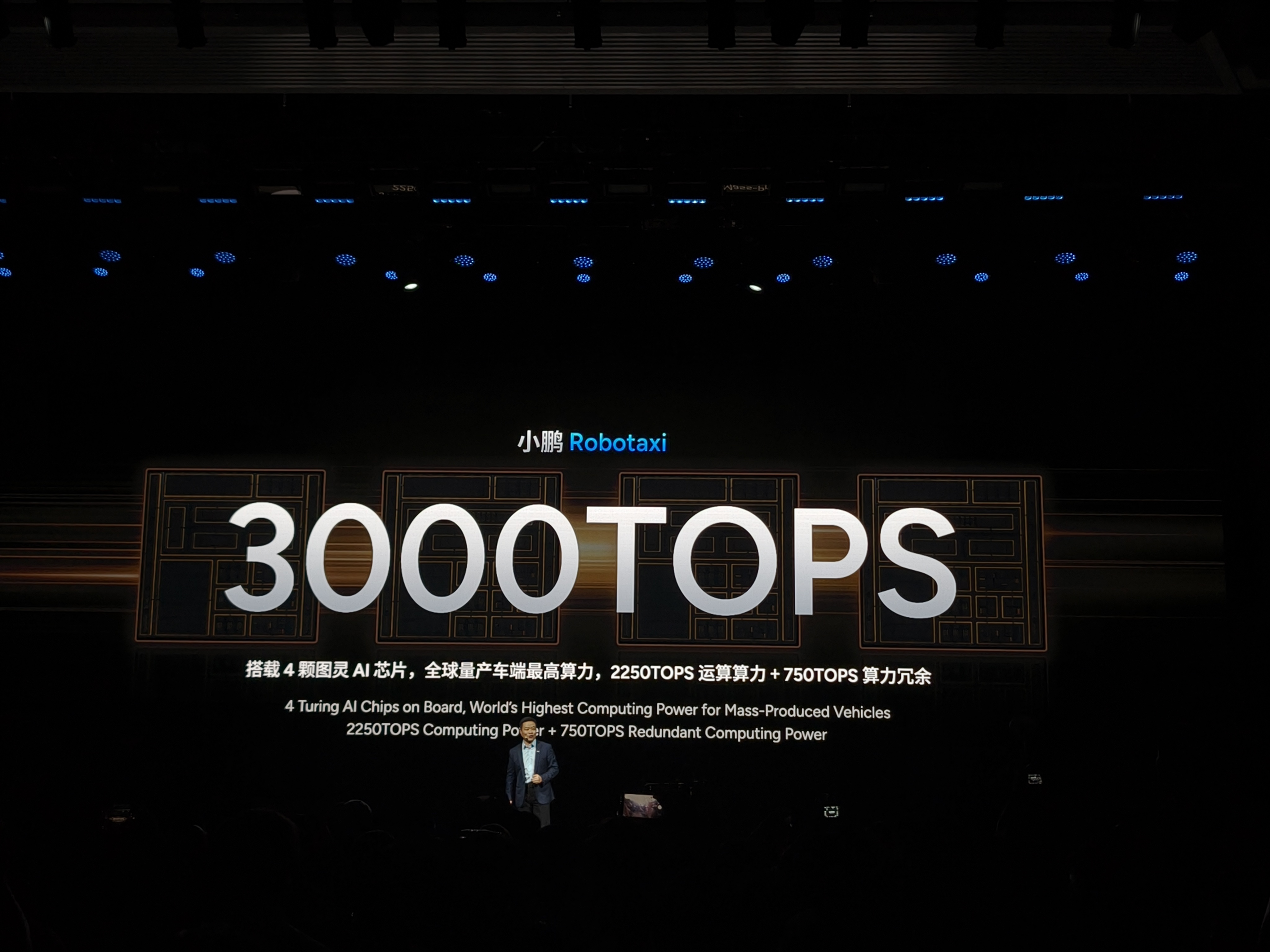 何小鹏透漏,明年小鹏将推出三款 Robotaxi车型,搭载第二代VLA和4颗图灵 AI芯片,车端最高算力3000TOPS。