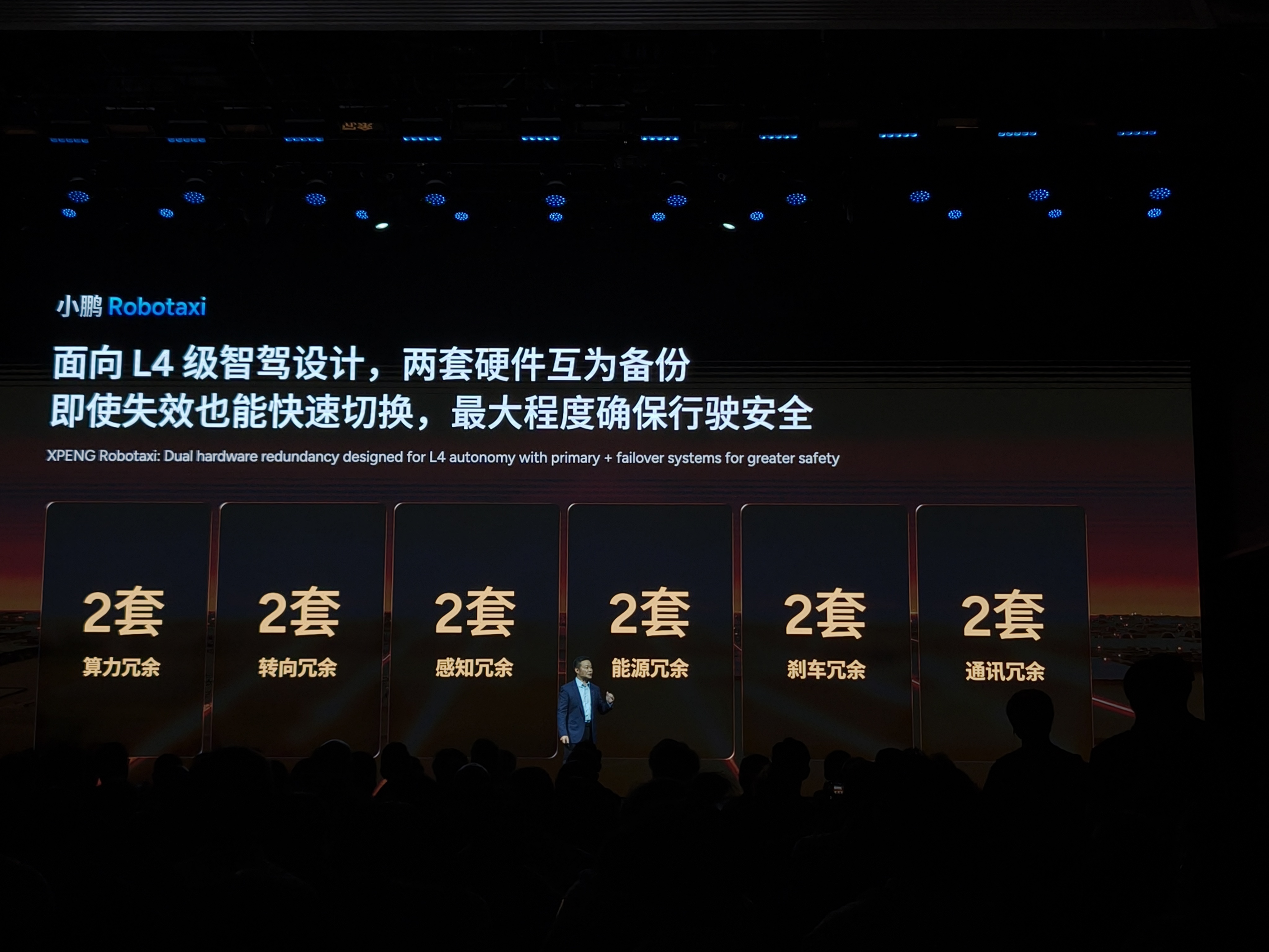 同时在算力、转向、感知、能源、刹车,通讯6个维度上两套硬件系统安全冗余,以及2套智驾模式的小鹏Robo。