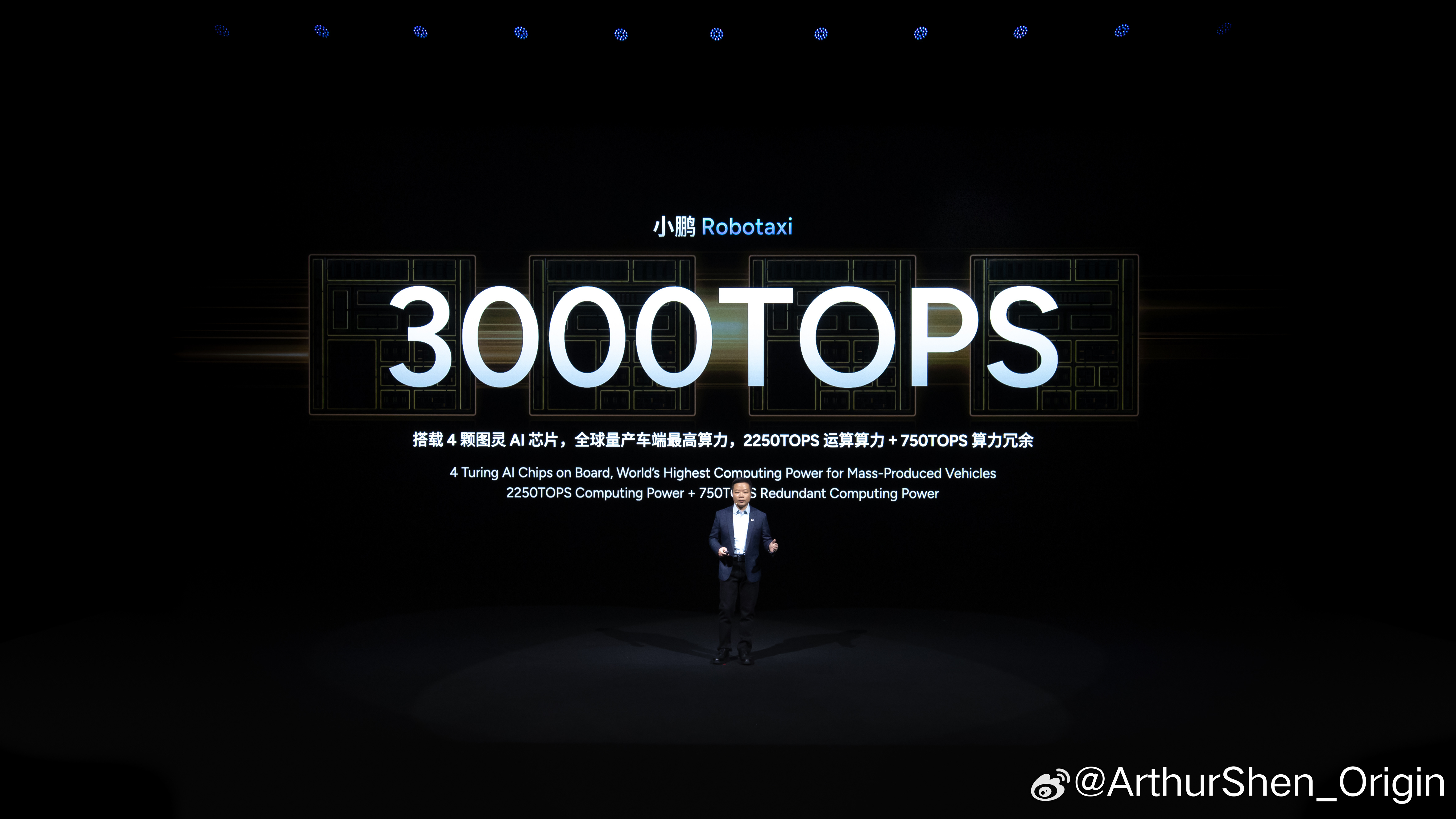 ✅搭载4颗图灵AI芯片,2250TOPS 运算算力+750TOPS 算力冗余。