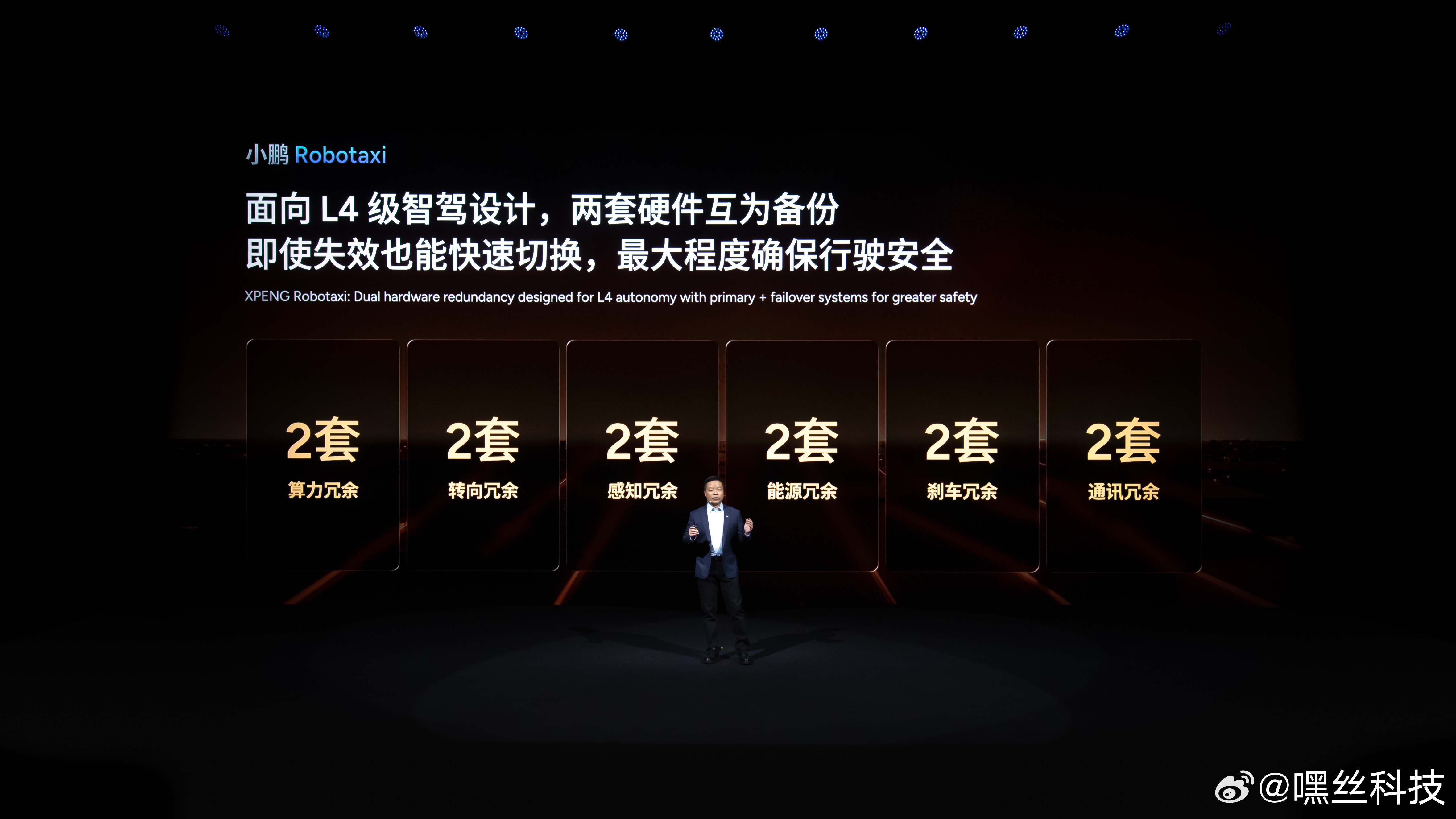 另外,小鹏Robotaxi面向L4级智驾设计,在算力、转向、感知、能源、刹车、通讯六个系统上准备了2套冗余,能最大程度保障行驶安全,并且联动 VLM,创新车外交互体系,让路人也能直观了解车辆状态,预计会在2026年开启试运营,那很快就能见到小鹏的Robotaxi了[喵喵]何小鹏首次披露物理AI巨大进展