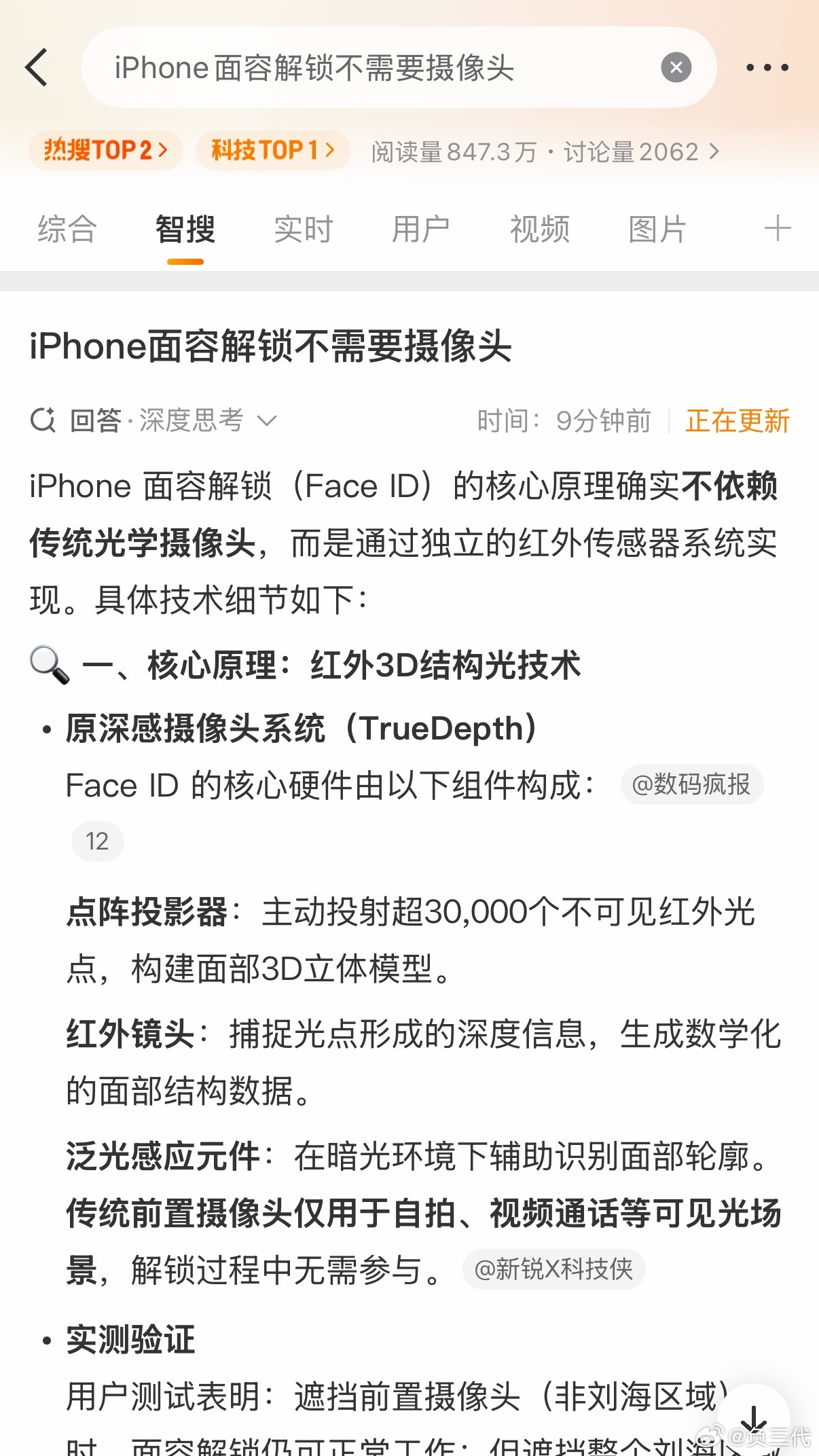 iPhone面容解锁不需要摄像头3D结构光确实不依赖摄像头,所以iPhone做了那么丑一个灵动岛放在前面,都是有代价的[无聊]