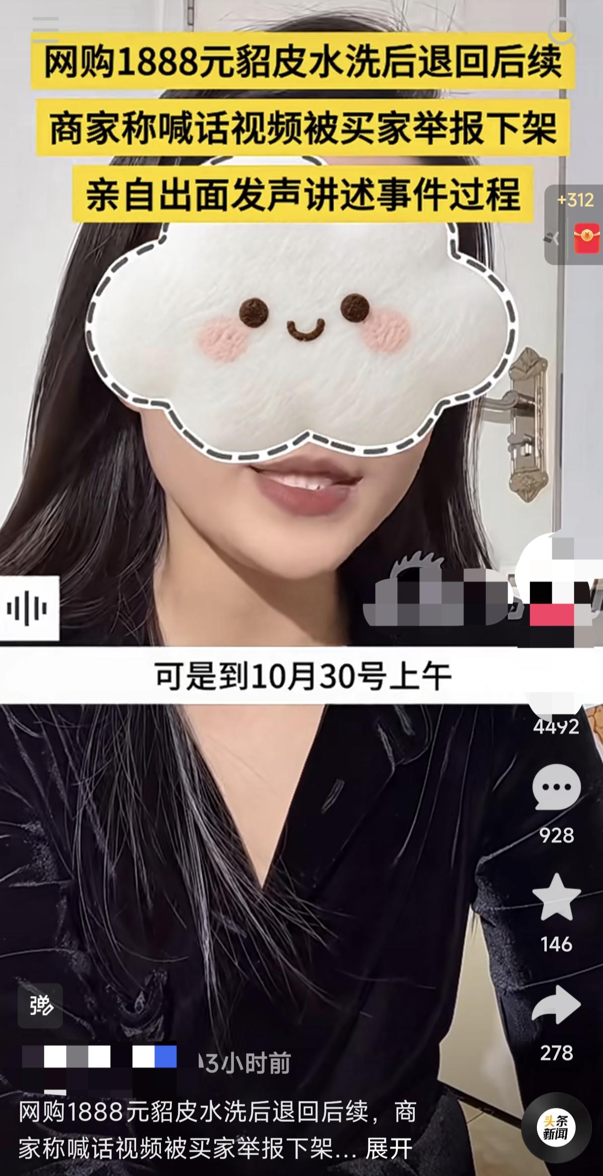 看到这个新闻能把人气死,山东一个女的花了1888买了个貂皮衣服到货5天后水洗了然后退货退款,平台竟然同意了。商家气不过报警说经济纠纷,商家损失谁来承担。商家300多公里赶到买家处理论,买家拒绝见面。水洗后可以退货退款吗,还有法理吗貂皮打假 真貂貂皮大衣 1888貂皮衣服水洗后退款 商家陈述视频被买家举报下架,难道真的无法无天,不讲道理了这个世界!