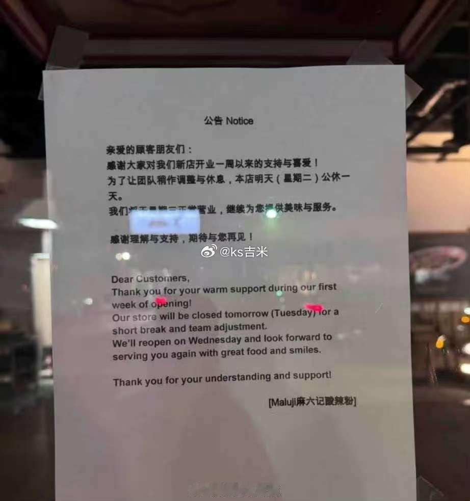 多名网友发文称麻六记美国店刚开业不到两周,因发生集体食物中毒事件已经关门了。[允