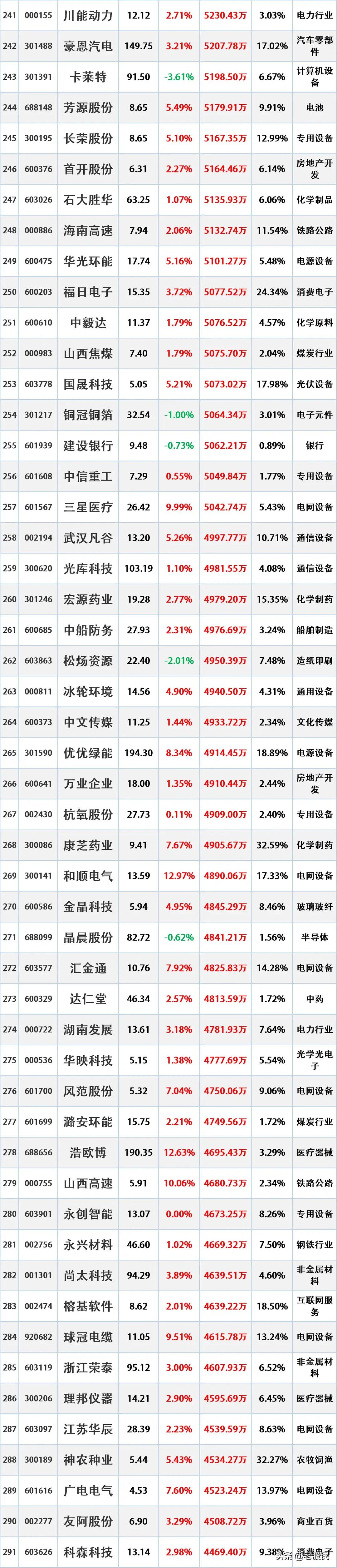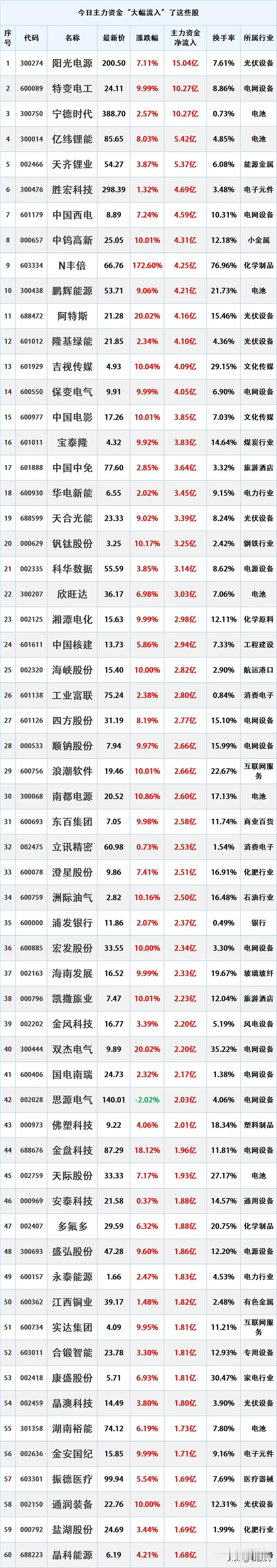 尾盘资金入场,11月5日主力资金大幅流入的股票名单。 资金流入是指在一定时期内(如一天、一周等),主动买入某只股票的资金量大于主动卖出该股票的资金量。主动买入是指投资者以卖方的报价直接成交,显示出投资者对该股票的积极购买意愿。