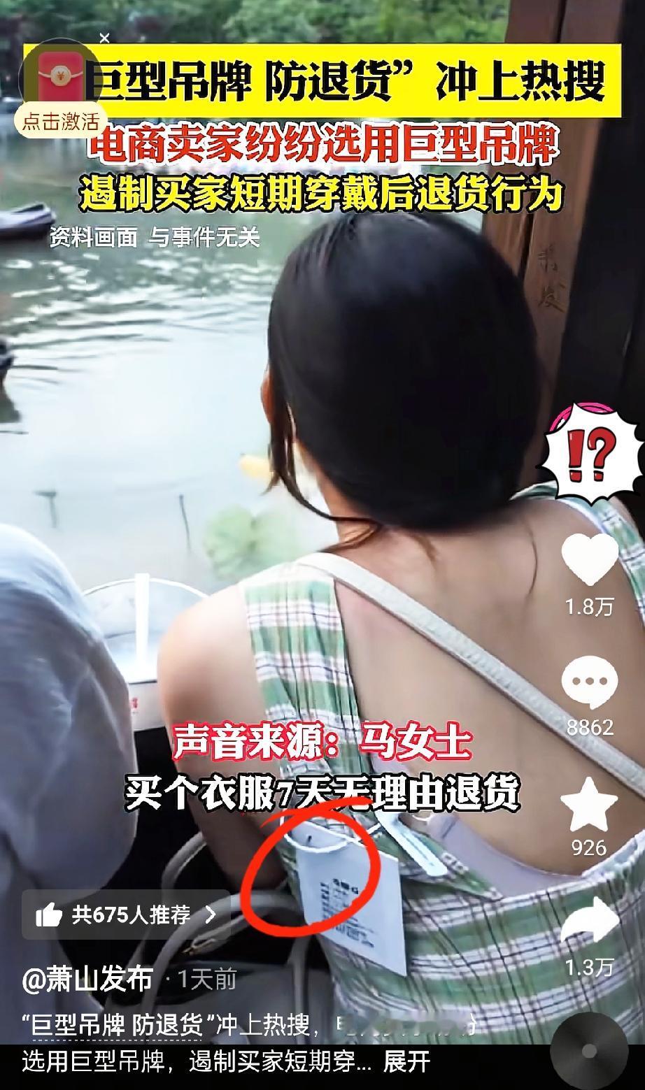 有种强烈预感 吊牌的事情这样一搞 电商行业要变天了“不是因为店铺老板不行而是因为白嫖党太让人气愤了” 你看现在商家集体用“巨型吊牌”防退货 哪里是小题大做 明明是被那些“穿完就退”的人逼的 衣服穿去参加聚会、拍完美照转头就退 自己省钱省事 却让下一个买家收到“二手货” 我之前就踩过坑“正价买的衣服” 拆开全是别人穿过的痕迹 扔了可惜穿着膈应别提多糟心了 这哪是薅羊毛 根本是把自己的方便 建立在别人的委屈上 支持商家搞巨型吊牌 其实是在护那些真心购物的人 你有没有遇到过买到“疑似穿过”的商品呢评论区说说你的糟心经历呀~