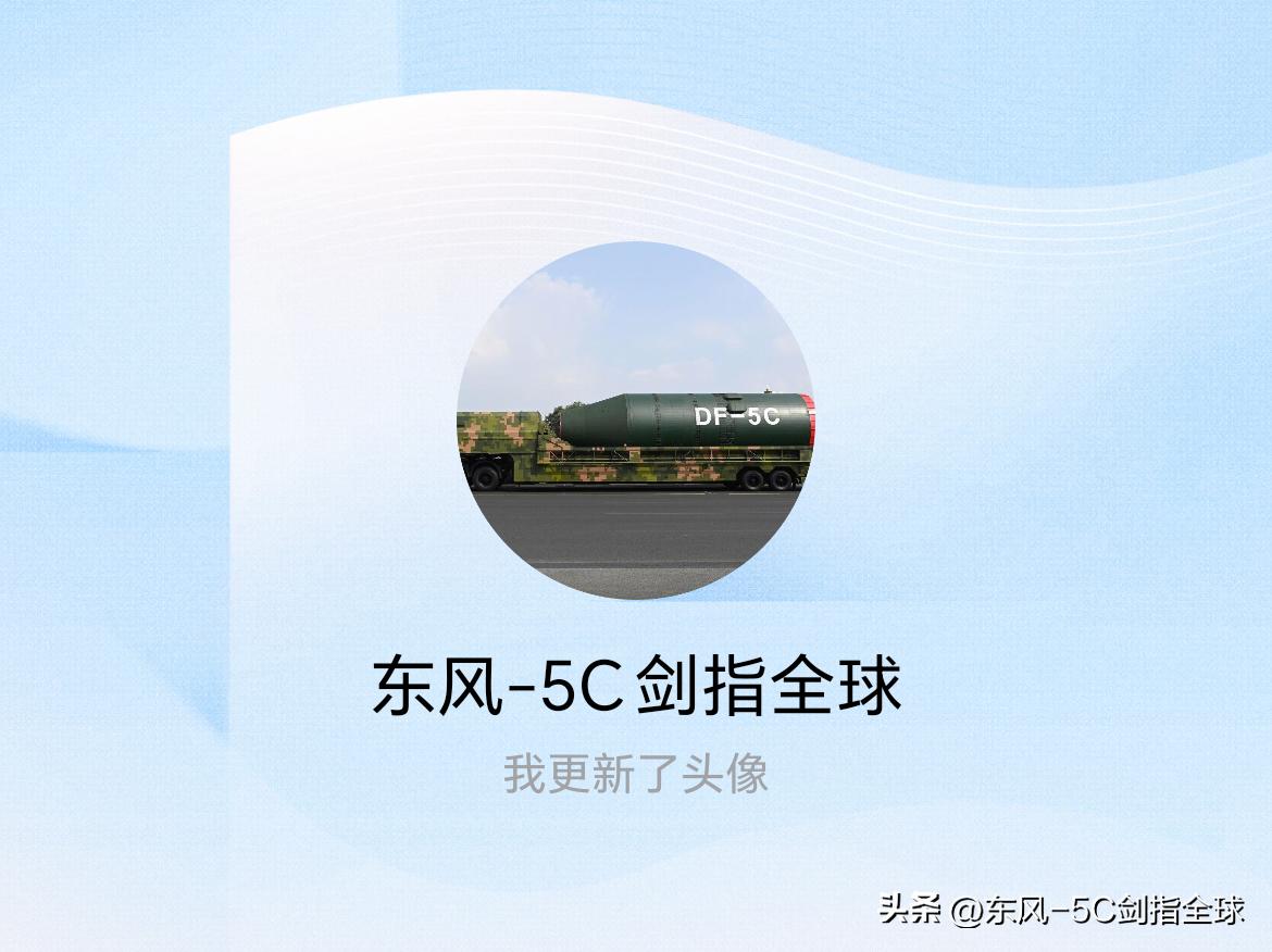 快来看看我新换的头像吧 东风-5C(DF-5C)是中国研制的液体洲际战略核导弹,是东风-5型洲际导弹的改进型 。 以下是其简介 : - 发展历程:2017年曝光,2017年1月中国进行了东风-5C导弹试射,2025年9月3日,在纪念中国人民抗日战争暨世界反法西斯战争胜利80周年阅兵式上亮相。 - 性能特点:采用固定发射井发射方式,射程约15000千米,可覆盖全球。能携带10个分导式弹头,可在纵深数百公里区域内选择独立目标并调节打击时序,突防能力强。配备二级液体燃料火箭发动机,推力和比冲参数大,飞行速度预计可达几十马赫。采用惯性、星光与北斗定位系统相结合的制导方式,打击精度高,还具备末端变轨机动和抛射假目标的能力,生存能力和突防性能大大增强。 - 价值意义:是中国战略反击体系的重要组成部分,与东风-41等核导弹共同构成中国“三位一体”核力量体系,通过全时戒备状态发挥战略威慑作用,有效支撑战略平衡,为维护世界和平提供保障。