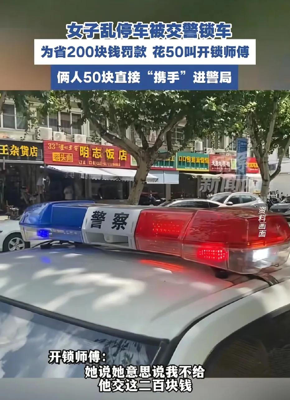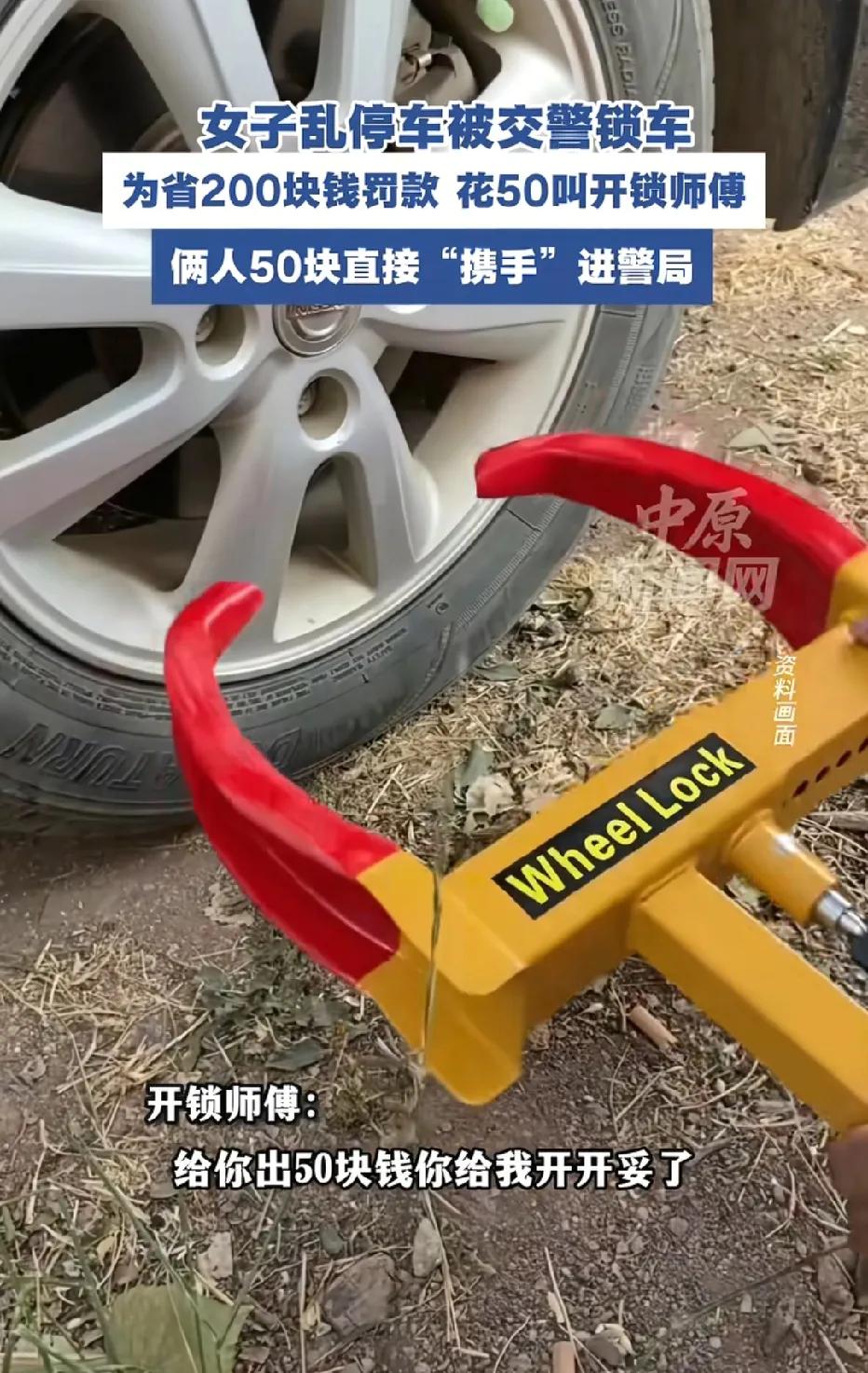 河南许昌,女子将车子乱停乱放在马路边,交警开出200元罚款,并将车子上锁,女子觉得200元太贵,不想交那么多,她却花了50元找开锁师傅,还向师傅保证绝不出卖他。师傅答应开锁,谁知两人结局悲剧了。 女子不管三七二十一,将车子乱停乱放在马路边。 她心想,反正就停那么一会,路上也没交警,应该不会有什么事。 抱着侥幸心理,女子心安理得离开了。 等到她取车时,却傻眼了。 她看到一张交警开出处罚200元的罚单。 女子气得直跺脚,那可是200元呀,她的心在滴血,她上一天班都没那么高的工资。 她本想一走了之,不想交罚款。 谁知她又发现,车轮被锁住了,可见交警显然是有备而来。 女子又气又急,她盯着车轮上的锁,又捏了捏手里的罚单,越想越不甘心。 200块钱够给孩子买两箱牛奶,够自己吃一周的午饭,凭什么就因为停一会儿车就没了? 她围着车子转了三圈,试着拽了拽锁,纹丝不动,反而引得路过的行人频频侧目,让她脸上火辣辣的。 女子眉头一皱,计上心来。 她掏出电话,打了一个开锁师傅电话。师傅,我想开个锁,我给你50块,我的车子被交警锁住了。 开锁师傅看在50块钱份上,有些心动了。 女子为了让师傅开锁,连忙拍着胸脯向他保证:放心!我绝对守口如瓶,只要你能打开,钱马上给你! 师傅觉得这钱赚得容易,加上女子表示不会出卖他。他竟然将此事违规抛之脑后了。 女子挂了电话,她心里窃喜,觉得自己捡了大便宜,50块钱就解决了200块的麻烦。 不到十分钟,开锁师傅骑着电动车赶来,戴着鸭舌帽和口罩,裹得严严实实。 他左右张望了一圈,确认没交警和摄像头对着,迅速掏出工具蹲在车轮旁忙活起来。 女子在一旁放风,心怦怦直跳,时不时抬头看路口有没有警车过来。 也就两三分钟,“咔哒”一声,锁开了。女子赶紧扫码付了50块钱,连声道谢,师傅收了钱没多说话,骑上电动车就匆匆离开。 她得意地坐进车里,发动车子准备溜之大吉,可刚开出没两百米,就被一辆巡逻警车拦了下来。 原来,交警锁车时,不仅贴了罚单,还在附近的监控盲区布了暗拍设备。 最近这片区域乱停车现象严重,不少车主为了逃罚找开锁师傅,交警早就盯上了这种情况。 女子开锁的全过程,包括和师傅的对话,都被拍得一清二楚。 最终,女子和开锁师傅双双进警局接受处罚。 有网友说,开锁师傅也是糊涂,明知道违规还接单,50块钱换拘留,这生意亏到姥姥家了,规矩真不能碰! 有网友表示,乱停车本身就不对,还想着逃罚,俩人为了贪小便宜违法,结局完全是自找的,做人做事还是得守底线呀! 那么,从法律角度,该如何看待此事呢? 《治安管理处罚法》第49条规定:故意损毁公私财物的,处五日以上十日以下拘留,可以并处五百元以下罚款;情节较重的,处十日以上十五日以下拘留,可以并处一千元以下罚款。 女子乱停车的行为本身违反了交通管理相关法律法规,应接受交警部门的处罚。 此外,她为逃避200元罚款,花钱找开锁师傅私自打开交警所上的锁,这种行为属于故意损毁公私财物。 同时,她的行为还构成妨害公务,因为她通过不正当手段试图逃避交警的正常执法,干扰了执法秩序。 开锁师傅明知车辆是被交警依法锁住的,仍在利益诱惑下答应女子的请求并实施开锁行为,同样属于故意损毁公私财物的违法行为。 最后,大家一定要自觉遵守法律法规,不要心存侥幸,否则将面临法律的制裁。 对此,你怎么看?