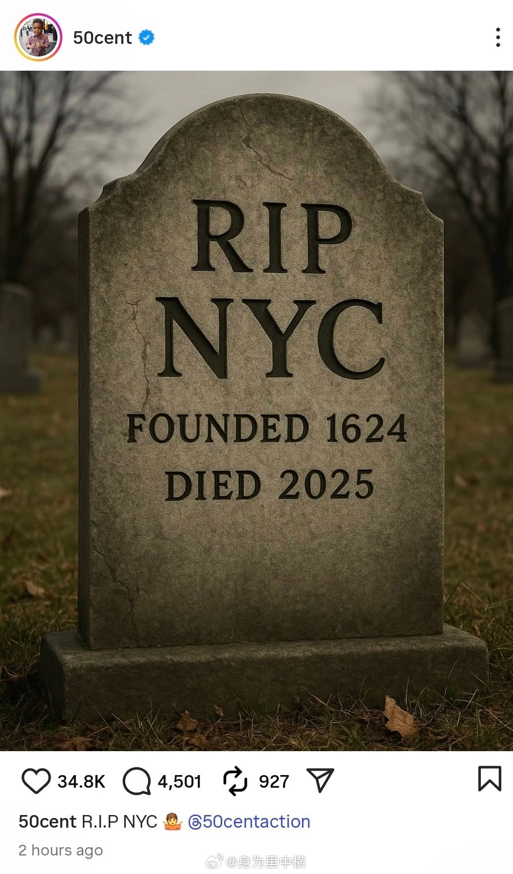 纽约新市长是伊斯兰教徒,嘻哈歌手 50 Cent 发布:建于1624年~逝于2025年,纽约安息