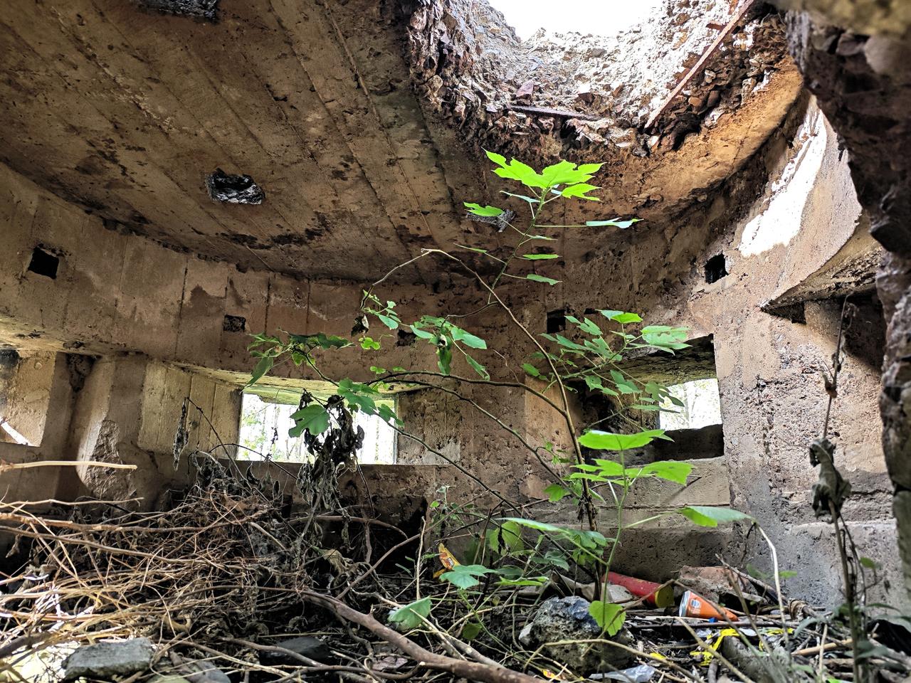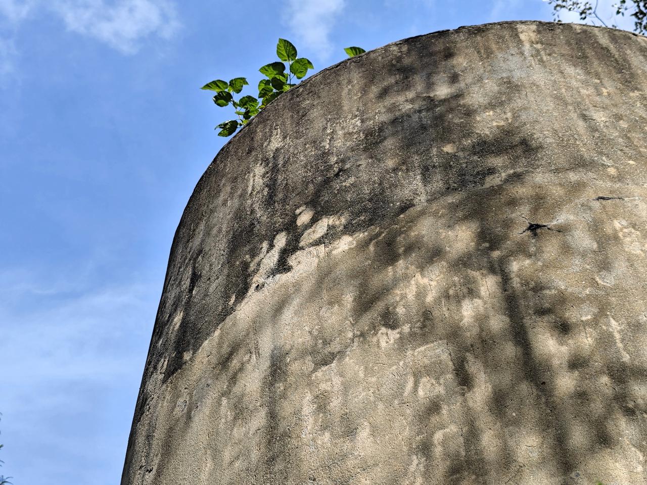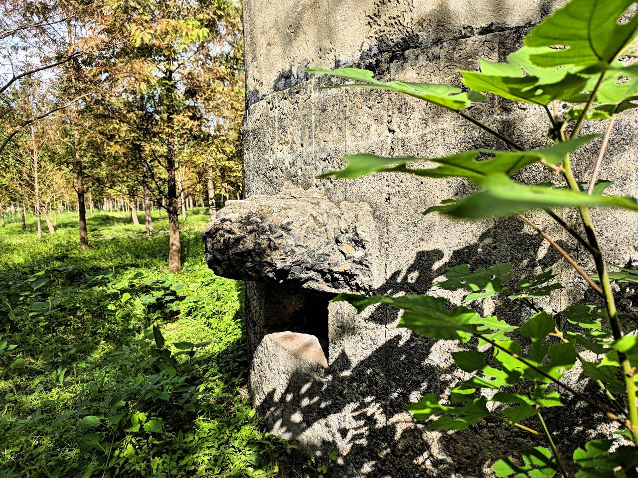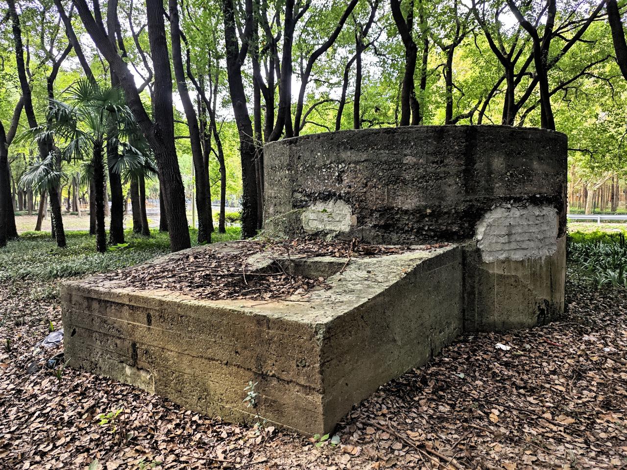 偶然得知,江桥有3个解放战争时期的碉堡,具体在现在的“绥德公园附近”。在上海本地人的指引下,我找到了这散落在绥德公园的3个混凝土碉堡。然而公园里,没有任何标示,更没有任何关于它的介绍,仿佛只有当地人才知道他们的存在。 从14号线嘉怡路地铁站骑自行车,大概15分钟,就可以到达绥德公园的“南门”。经过南门前会经过一条叫“新槎浦”的小河,穿过仅有一车道的铁路涵洞,就看到绥德公园的南门。从地图上看,绥德公园的地理位置刚好在两条铁路线之间,碉堡群靠近“京沪铁路”,呈“犬牙”布置,扼守铁路的交通咽喉。 据说,绥德碉堡群其实有4个,除了绥德公园这里的3个,还有一个在公园之外,说句实在话,找到这3个,尽力了。 3个碉堡大小和形状几乎一致,但各自又有所不同。所有碉堡的构造都是圆筒形状,使用钢筋混凝土,厚度大概30公分左右,不算很厚。碉堡的高度不高,感觉像地堡,四周均开有射击口。 在碉堡的顶部,一般有4个天窗,用于透气。碉堡圆筒的五分之一会伸出一段,设置为碉堡的入口,猜测也是储存弹药的地方。 历经风雨飘摇,3个碉堡命运不一。其中一个更是被炸开了一个天窗,看起来历经风霜;有一个被用作水塔基座,最终荒废;仅有一个保存完整,但终日不见阳光。 关于关于碉堡的历史,网上大多流传是属于解放战争时期,上海战役,当年国民党军队留下的,至于背后的故事期待知情人来补充了。碉堡 上海战役 古碉堡遗址 绥德公园 战争 上海身边事