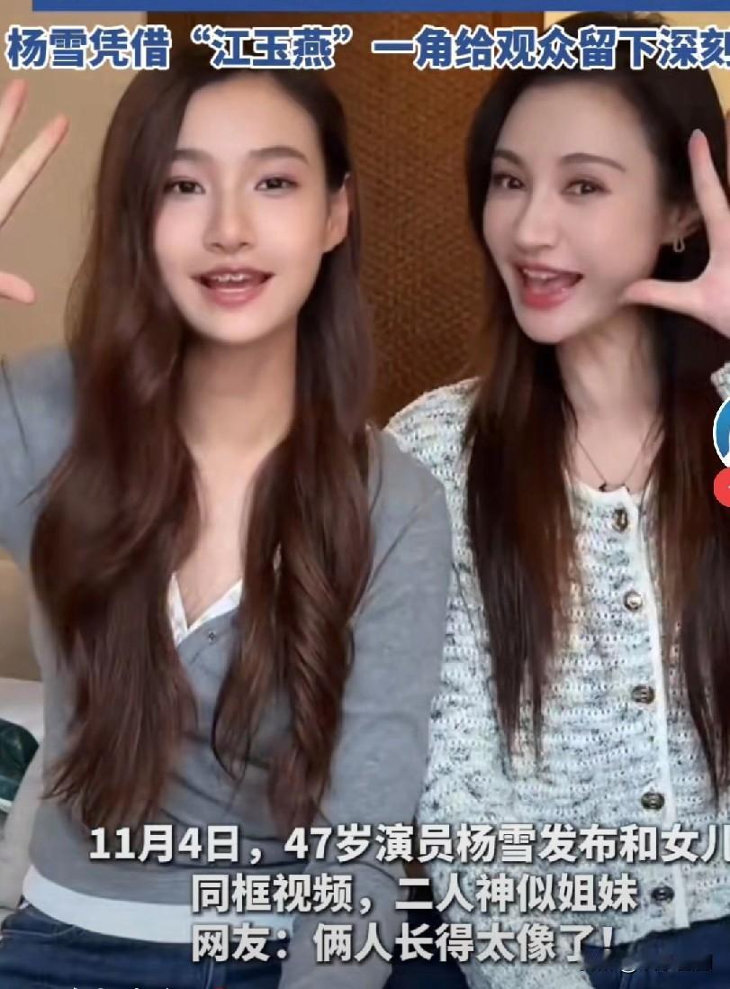 11月4日,47岁的杨雪在社交平台分享和15岁女儿的合拍视频。 评论区直呼“有两个江玉燕”,杨雪也替女儿认领了“小江玉燕”的名字。 杨雪曾凭《小鱼儿与花无缺》里的江玉燕一角成无数人童年阴影,还出演过不少出圈角色。不得不说,这基因遗传太强大啦!