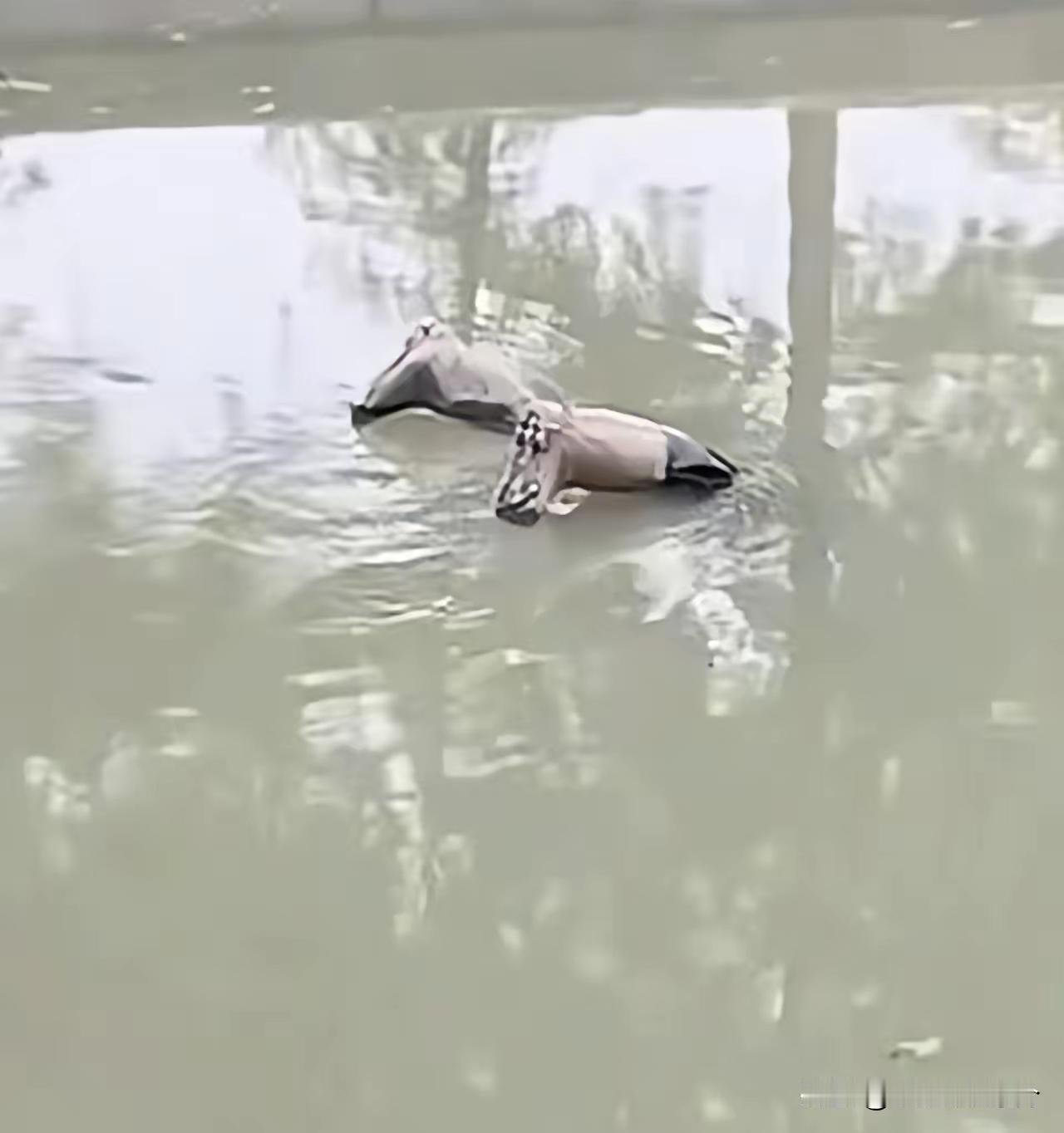 11月4日,上海松江,一男子在骑行时看到一双雨靴漂浮在河中,男子当时很害怕,立即