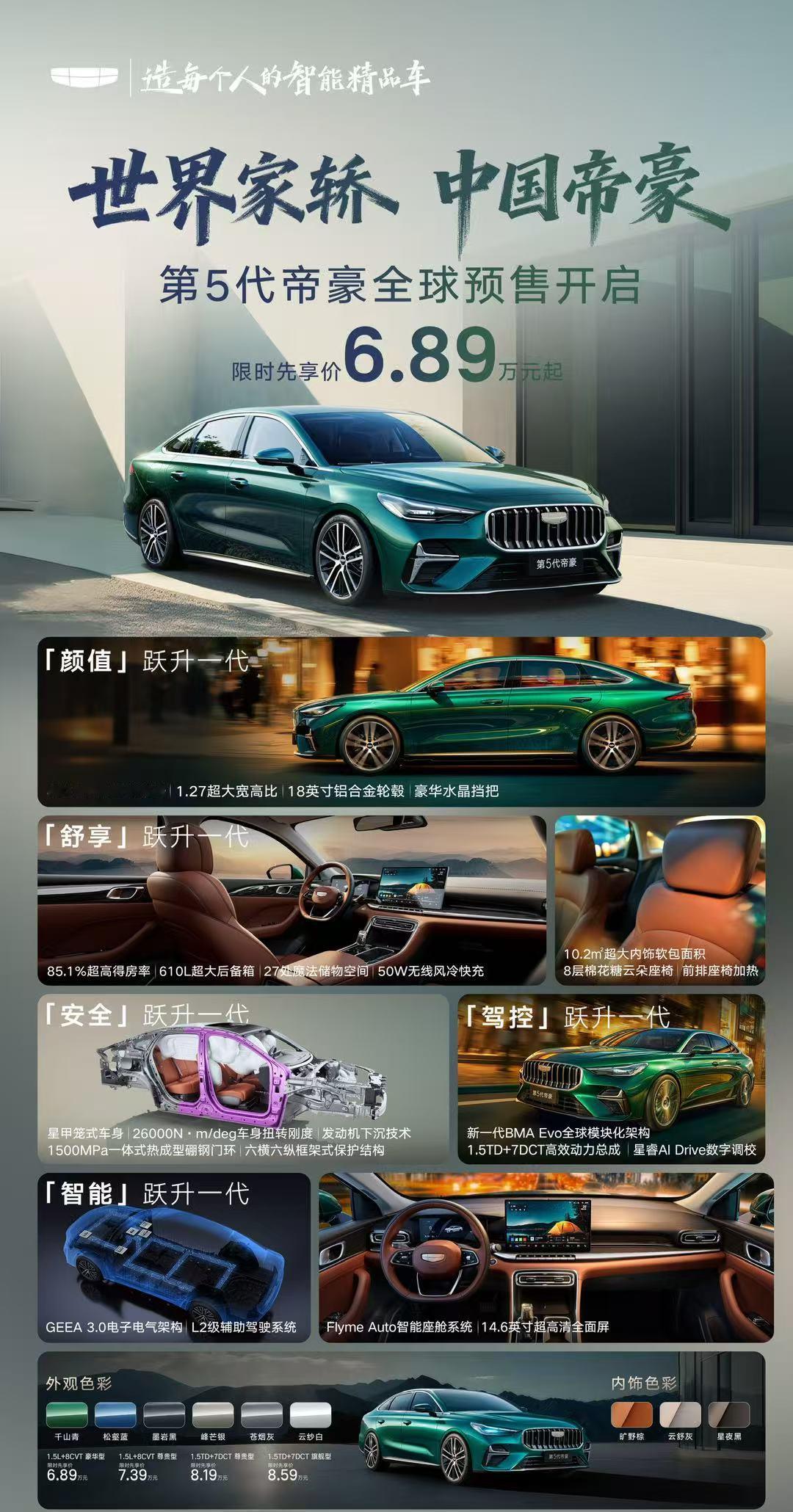 吉利帝豪1.5NA和1.5T两套纯燃油动力 预售起步价控制在7万以内 代步的平价车款,帝豪用上新能源那套内装 空间布局和车厢使用逻辑都很对味 感觉没什么特别需要额外增加的… 这定价你会怎么选?【来自懂车帝车友圈】