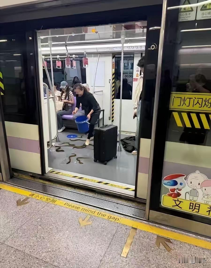 地铁安检员打瞌睡了嘛? 这些像蛇的怎么能带上地铁嘛? 塑料桶被踢到啦 你看车厢里到处跑, 咬到人或者吓到人就不好了嘛 地铁安检人员 地铁过安检 地铁安全 安检迷惑行为 地铁禁忌 地铁保安安检 地铁安检乘务员