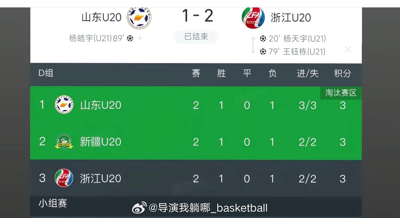全运会U20足球这规则也很少见,新疆和浙江将抽签决定谁小组出线