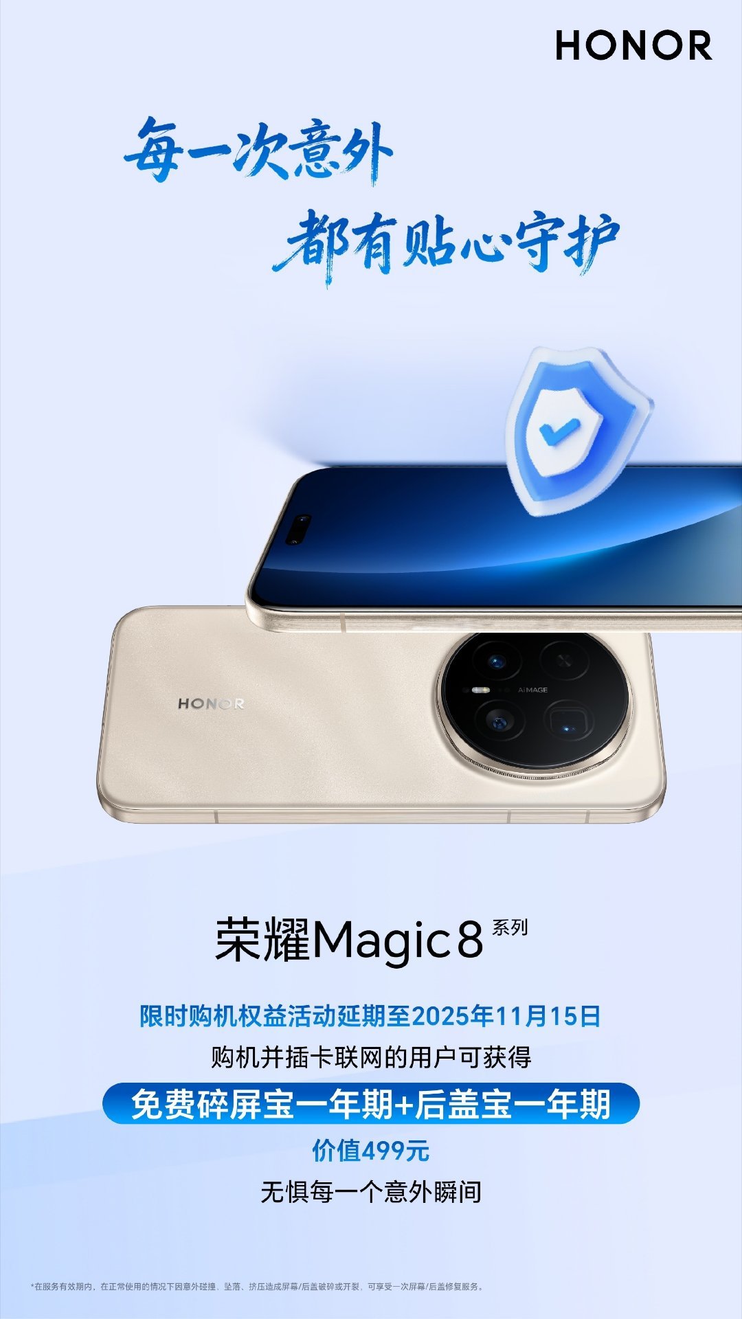 原定11月3日截止的免费碎屏宝一年期+后盖宝一年期权益,现延期至2025年11月15日!同时更享免费电量宝两年期权益,