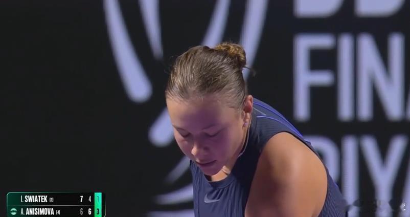 决胜盘阿尼西莫娃率先破发,3-1斯瓦泰克。利雅得wta年终总决赛斯瓦泰克vs阿尼