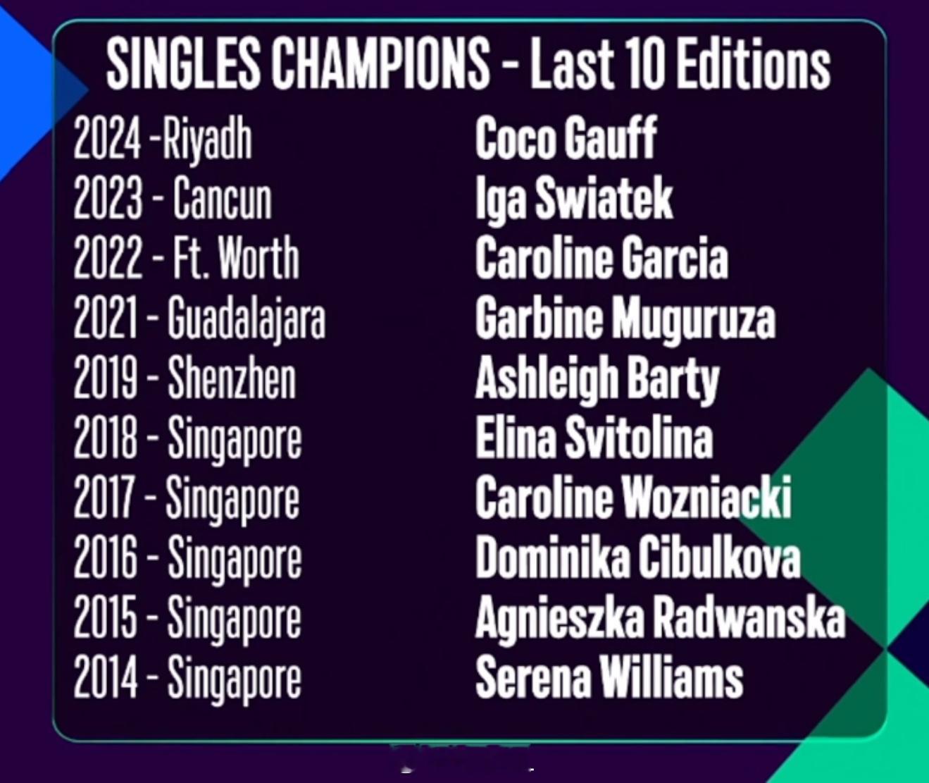 过去10年的年终总决赛的冠军👇你对哪一年印象最深刻?网球talking大会​