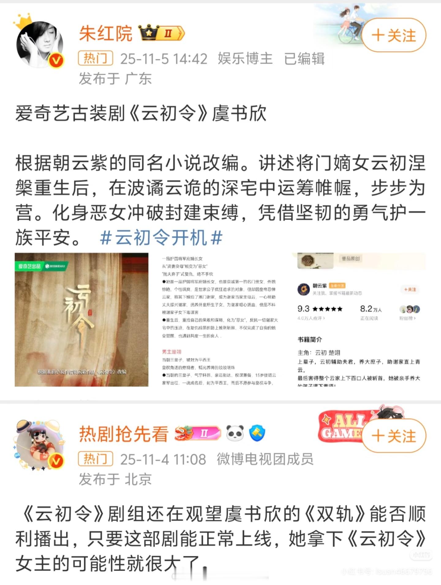 🍉云初令 虞书欣 主创班底升级 话说,一念江南呢?不拍了吗
