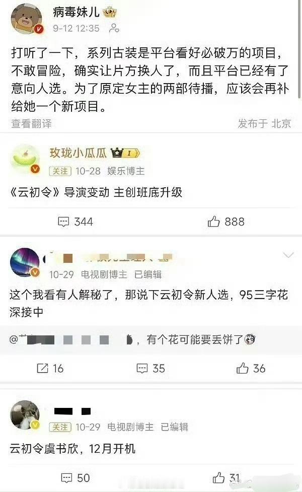 🍉云初令虞书欣主创班底升级话说,一念江南呢?不拍了吗
