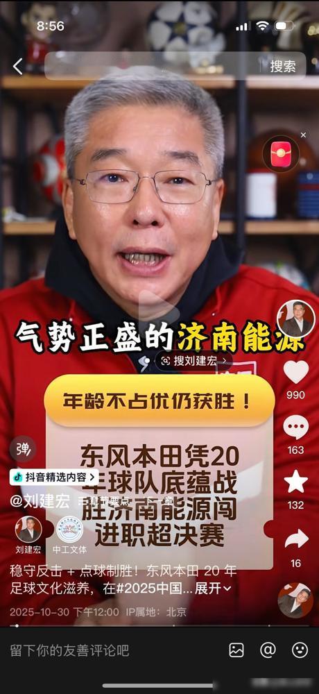 这届网友真是太好笑了,邵佳一当选国足新任主教练,这个时候球迷肯定又想到了一个人,没错就是刘建宏,都在他抖音作品下面留言,问佳一正直吗? 国足选帅这事儿,网友的脑回路永远是个谜。一个“正直”的提问,愣是把严肃的官宣变成了大型互动现场。 邵佳一上任,评论区却跑偏到刘建宏那里。这波操作看似无厘头,其实藏着球迷的复杂心态。大家不是不关心战术能力,而是被太多事情搞怕了。选帅先问人品,成了某种条件反射。 看看邵佳一的履历。球员时代留过洋,执教后带青岛西海岸冲超,确实有两下子。现在国足这局面,请大牌外教成本高风险大,用本土教练更务实。球迷心里跟明镜似的,能力行不行,场上见真章。但为啥先揪着“正直”不放?怕是以前吃的亏太多了。 刘建宏被@,也不奇怪。他当年解说时那句“进啦进啦进啦”多经典,球迷早把他当自己人。在他地盘问邵佳一,就像在村口大树下聊家常,透着股熟人社会的信任感。这种追问,表面是调侃,深处是对公平公正的渴望。 说白了,球迷要的不复杂。你能带出成绩,当然好。但更底线的要求是,你得是个堂堂正正、不玩虚的带头人。队伍可以输球,但不能输掉气节。这届网友用幽默撕开了一道口子,把最朴素的期待摆上了台面。 邵佳一是不是真“正直”,时间会检验。但网友这一问,倒是给所有教练提了个醒:在中国足球这片土地上,专业能力是入场券,公信力才是真正的压舱石。 所以你看,好笑吗?一点不好笑。这分明是种无奈的清醒。当一个问题需要反复被追问的时候,恰恰说明它有多重要。 就看邵指导怎么接招了。