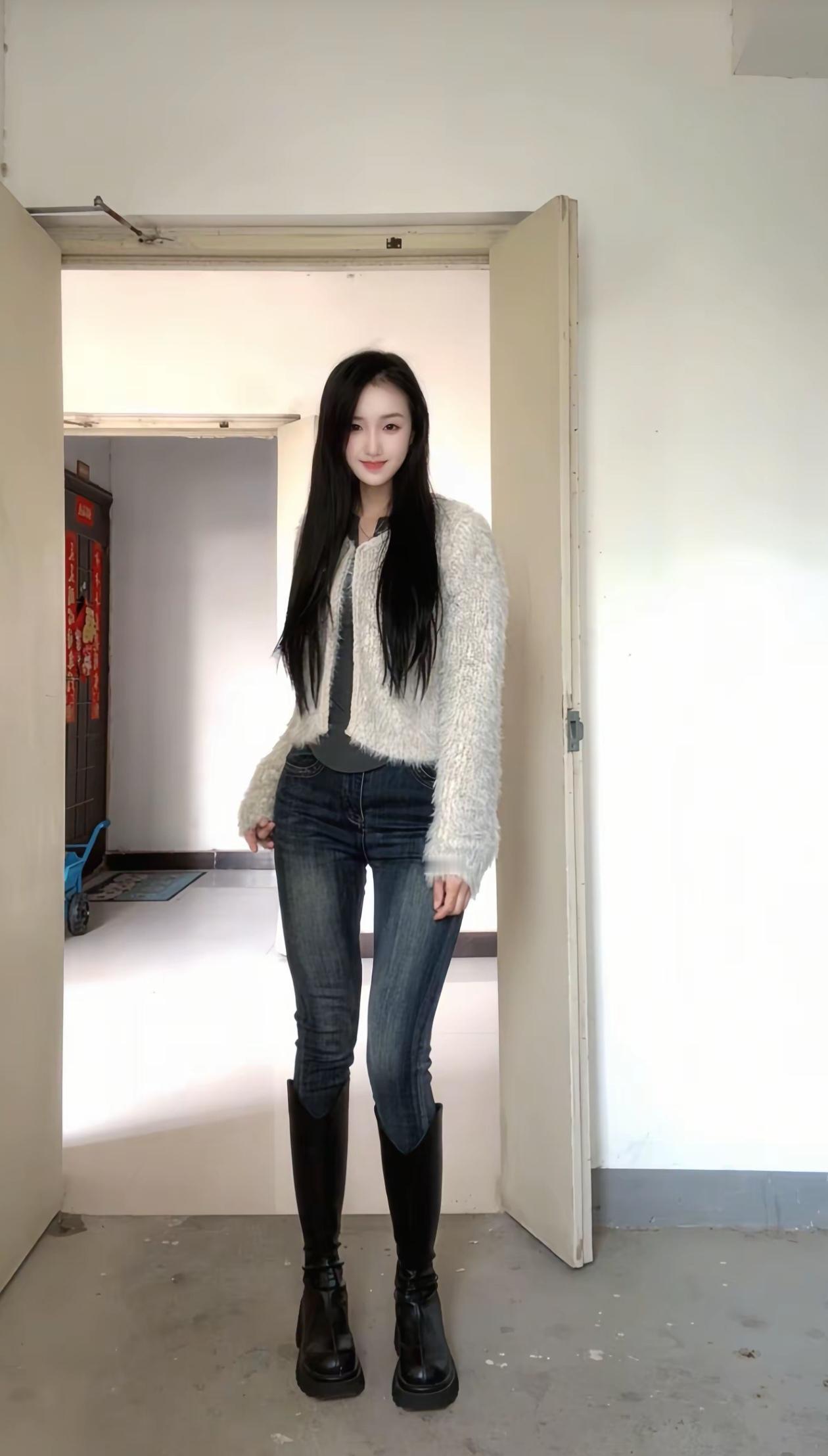 时尚穿搭指南:毛绒外套+牛仔裤+高筒靴,秋冬必备!🌟👗👢