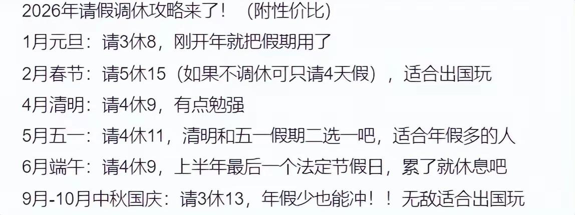 今年春节可真是超长待机! 2026年春节要放9天假 消息一出来,大家赶紧查机票, 搜索量一下子就涨了两倍多。就拿三亚来说吧,有航班的票价直接从2000元飙到了5000元,涨得让人有点措手不及,连上海不少人晚上加班后回家都不忘刷手机抢票,那手速比平时买限量款还快。 看到这情况,网友们可坐不住了,纷纷在网上吐槽:“年二十八总算能腾出手大扫除了,结果钱包要被‘大扫荡’一波。” 有数据统计,今年春节出行的机票订单量比去年多了63%,就连之前因疫情停了的加拿大团队游,最近也火起来了,蒙特利尔这边的搜索量直接涨了223%。 说到出行策略,打工人的小算盘打得噼啪响——只要请6天假,前后连周末就能休17天!这波操作让老板们瞅着公司里越来越空的工位,心里估计直犯愁。不过也有精明的人发现转机比直飞便宜近一半,虽然价格少了,但多花7个多小时,这时间够从哈尔滨滑完冰再去海南游个泳了,想想都觉得累。 今年过年,你是准备宅家陪爸妈吃顿热乎饭,还是计划着带娃去远方看不一样的风景?不管咋选,这股子过年的热闹劲儿,咱们都盼着!(配图建议:机票价格对比图/请假攻略长图/春运人潮照)