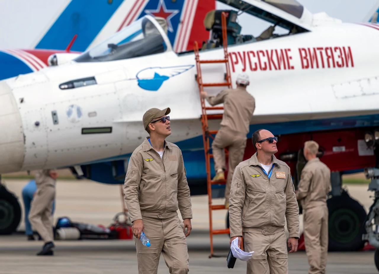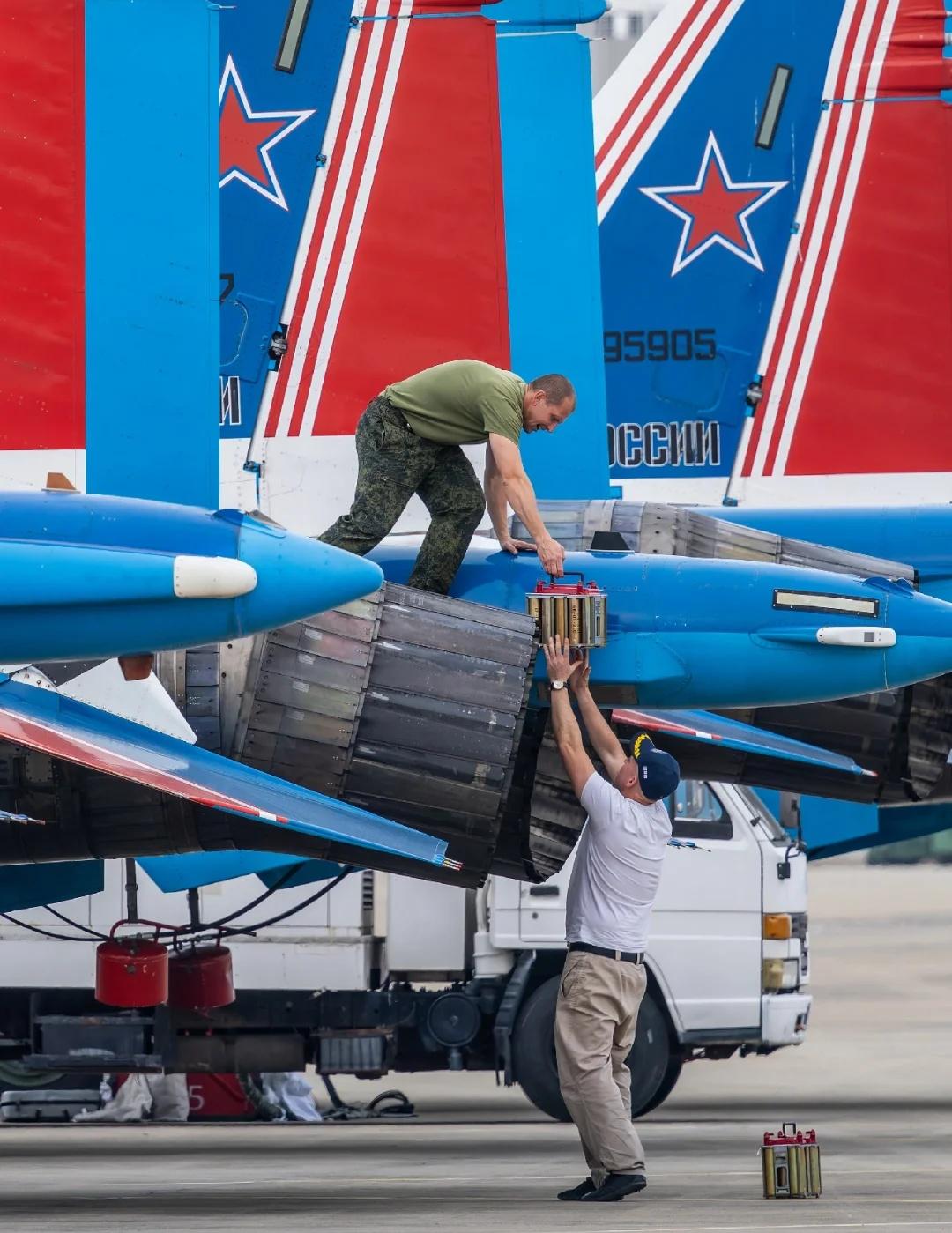 大气层最强男团——勇士 从珠海追到南昌,我愿称之为大气层最强男团,俄罗斯"勇士"飞行表演队的飞行员以及机务大爷们,图3中间为丹尼尔·索洛德尼科夫少校(Major Daniil Solodnikov),右侧为奥列格·叶罗菲耶夫上校 (Colonel Oleg Erofeev)。航空摄影 航空 航空摄影 南昌飞行大会 航展 珠海航展 战斗机飞行员 飞行员 勇士飞行表演队