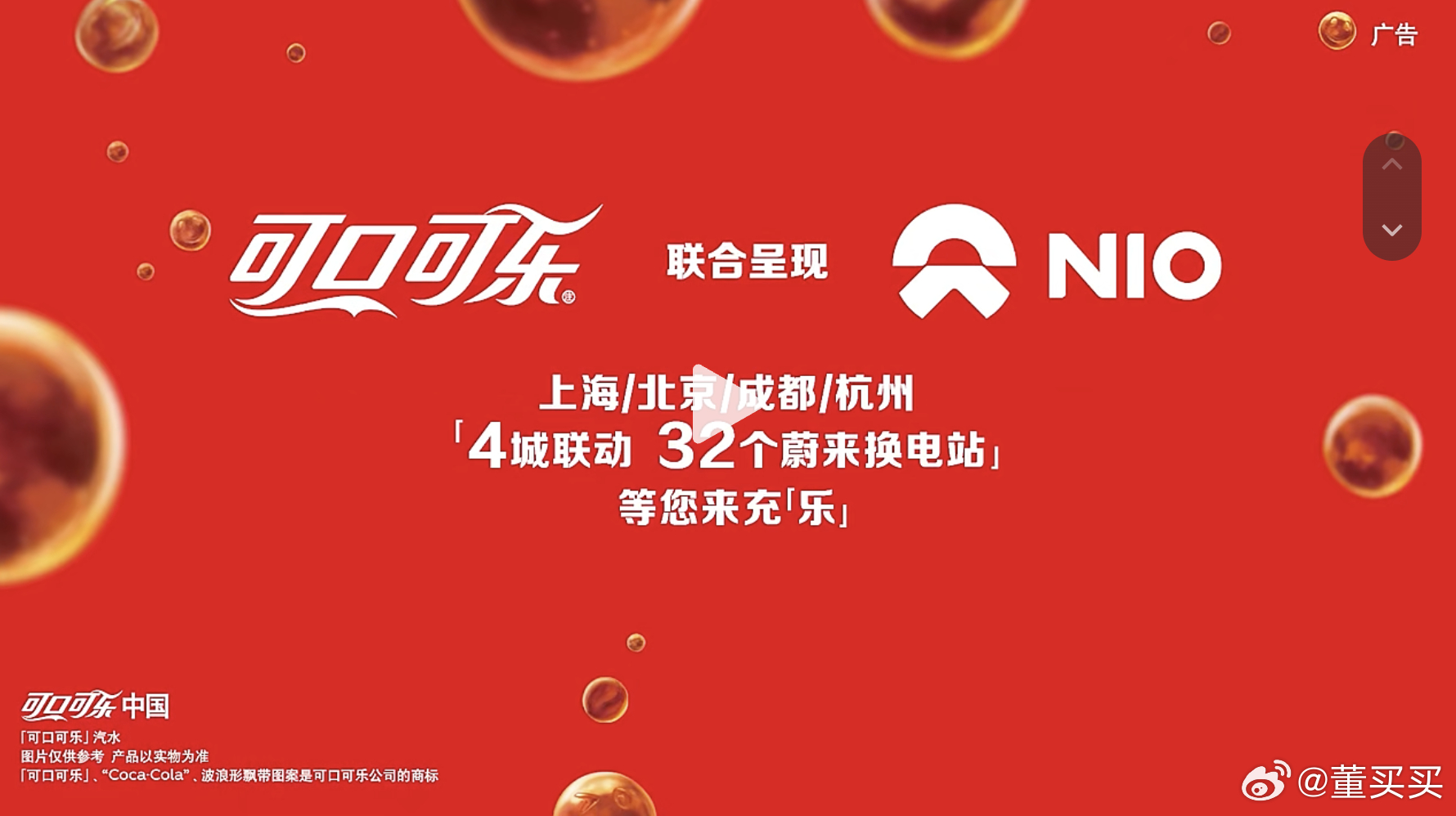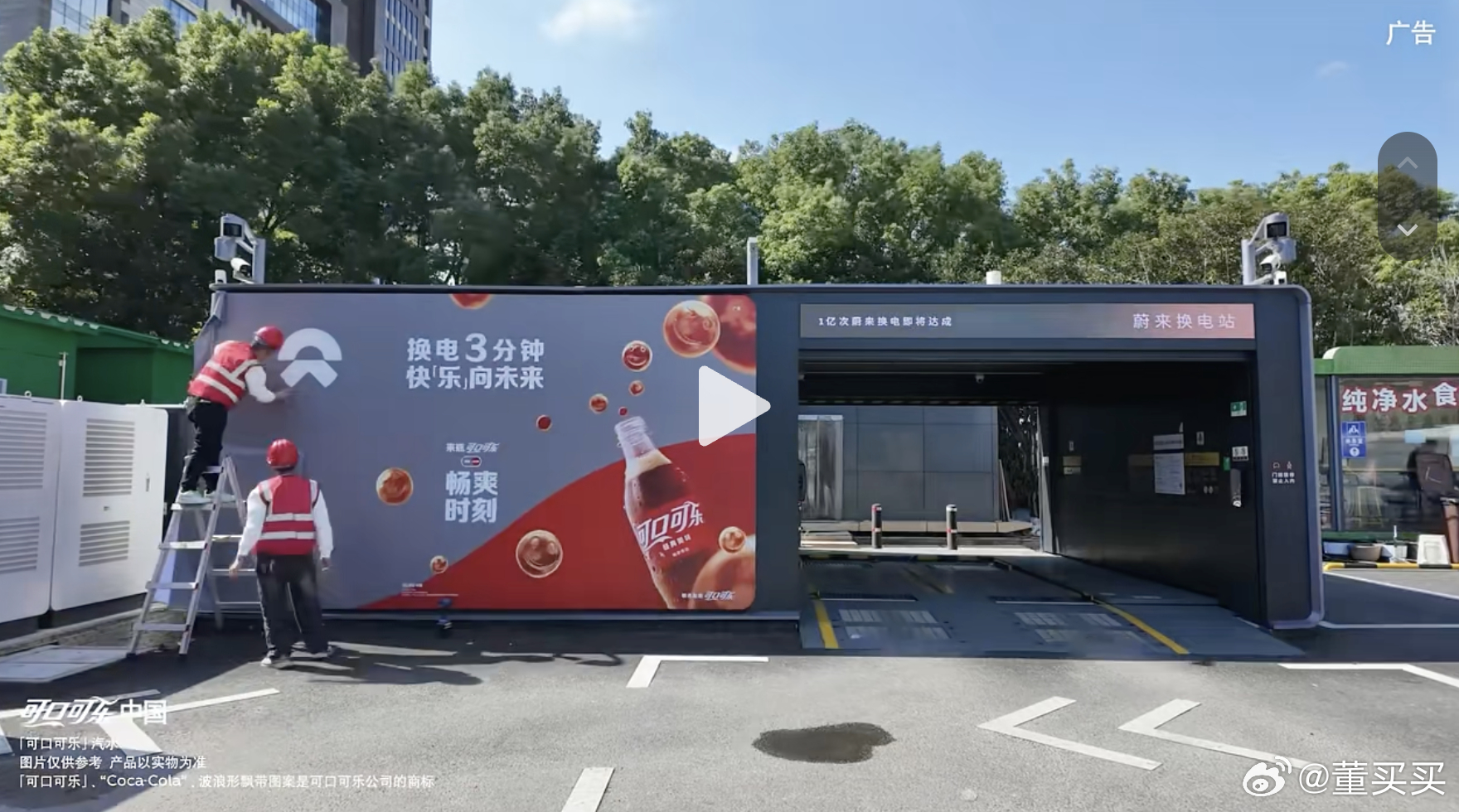 全国有32座蔚来换电站,可口可乐贴了广告。