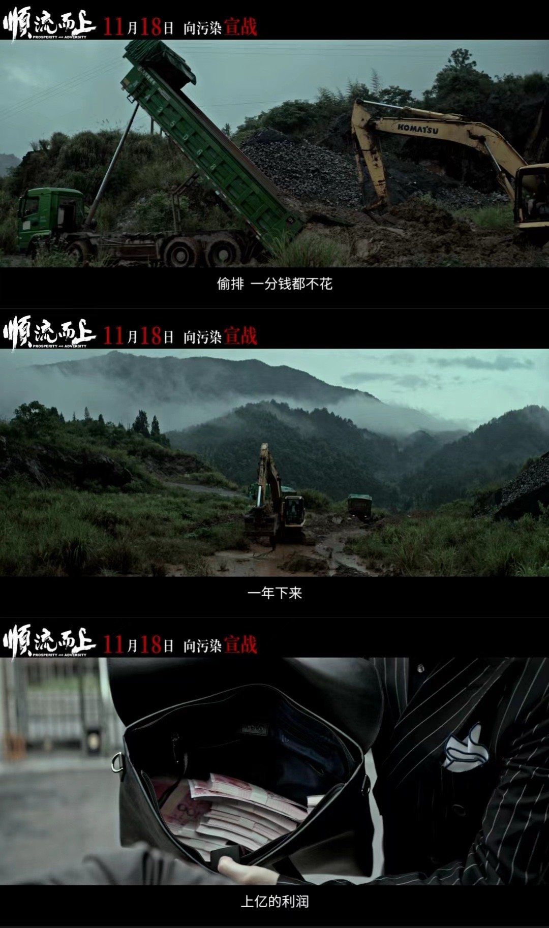 电影顺流而上定档 终于定档了,这部电影的题材很贴近现实环保问题值得看看, 11月18日准时见!环保题材和扫黑元素就很吸睛第一次有电影为喝上干净水发声