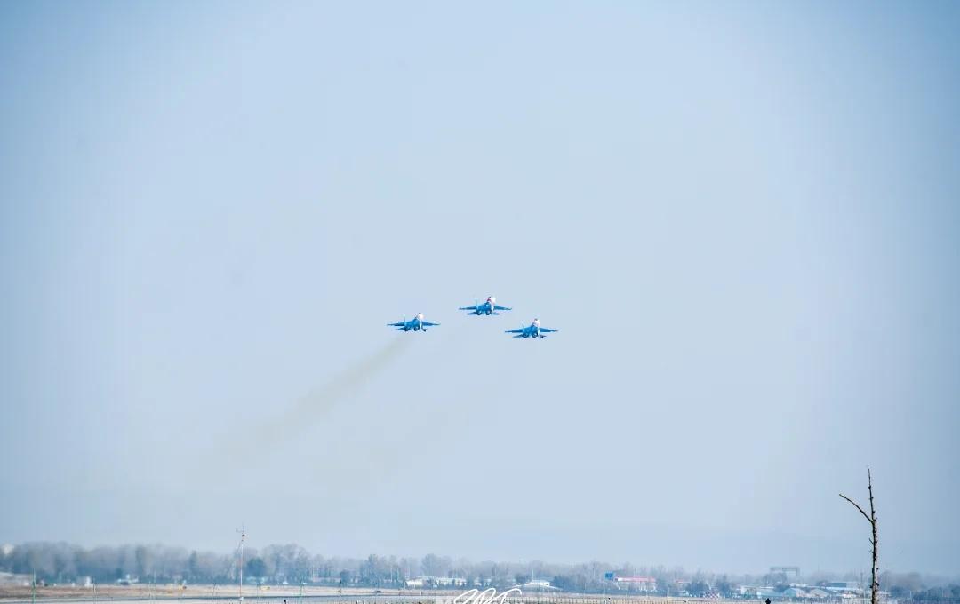 航空摄影飞机战斗机俄罗斯勇士飞行表演队返航飞行