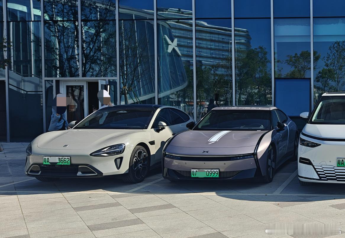 小鹏汽车[超话] 据说,左边的小米SU7 和右边的小鹏P7 都是何小鹏的座驾,看尾号一单一双,你说今天他会开哪台?