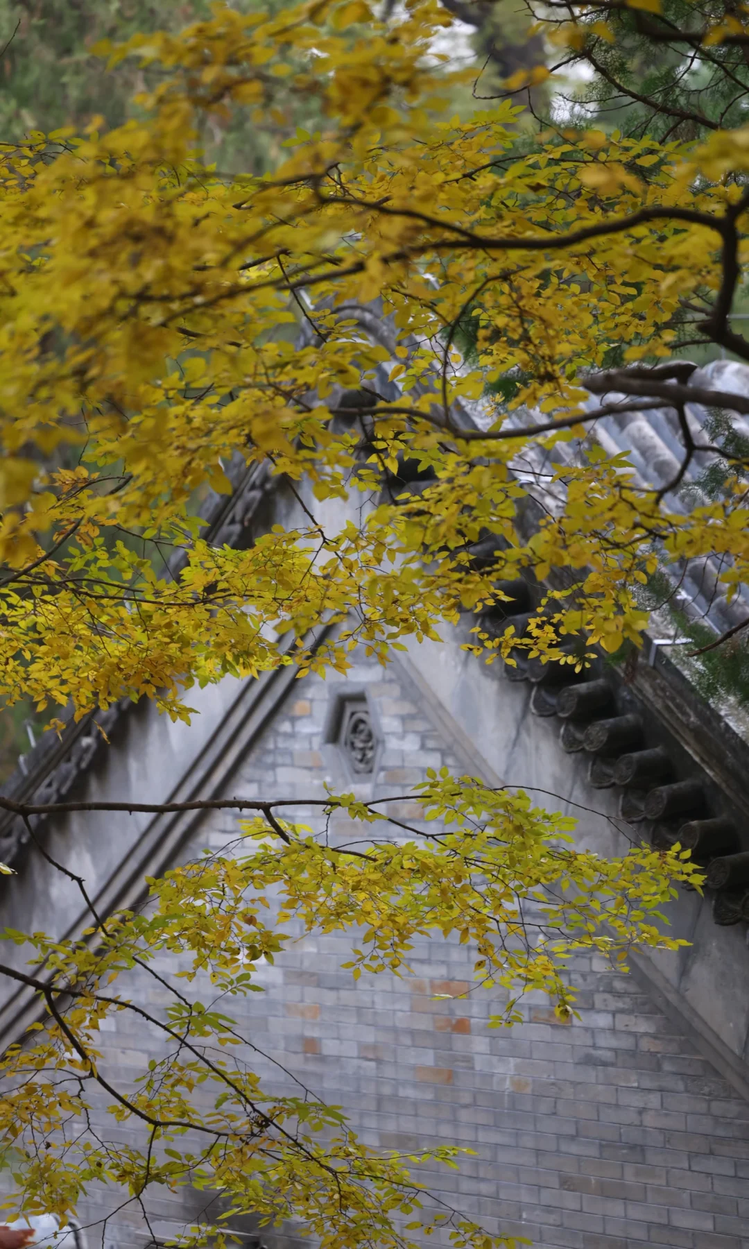 五塔寺,潭柘寺,万寿寺,八大处等还不太黄,估计这周末到下周最佳。(法源寺,寺外的银杏大道黄了,不过寺内最大的还绿着。)