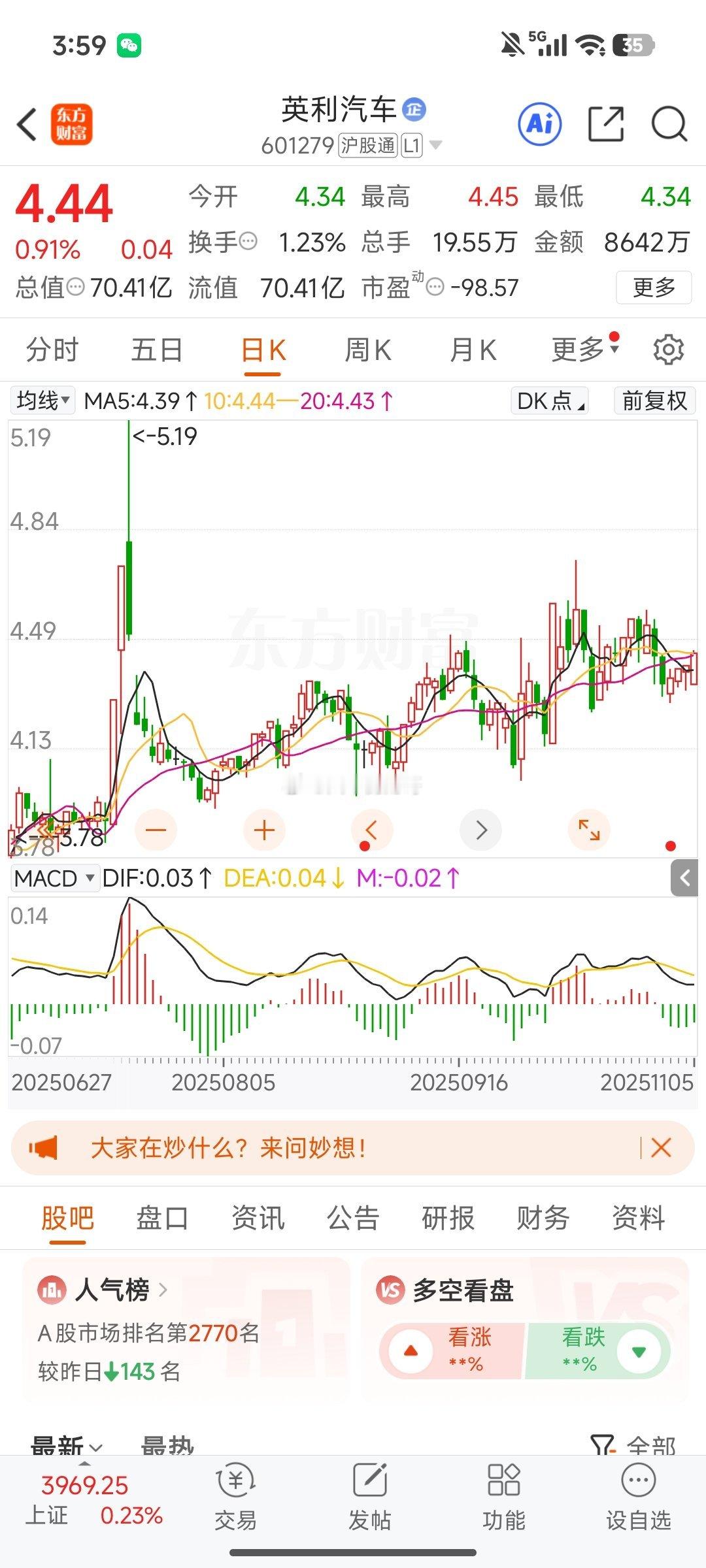 英利汽车,现在财哥只做这只票,一起见证奇迹。特别声明;这是财哥自己炒股日记,请勿