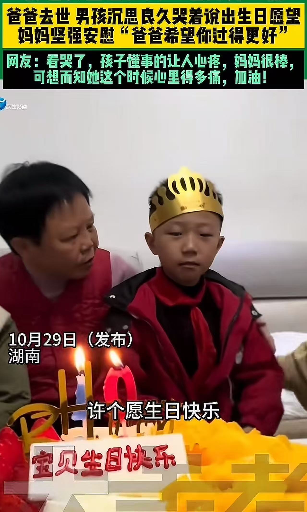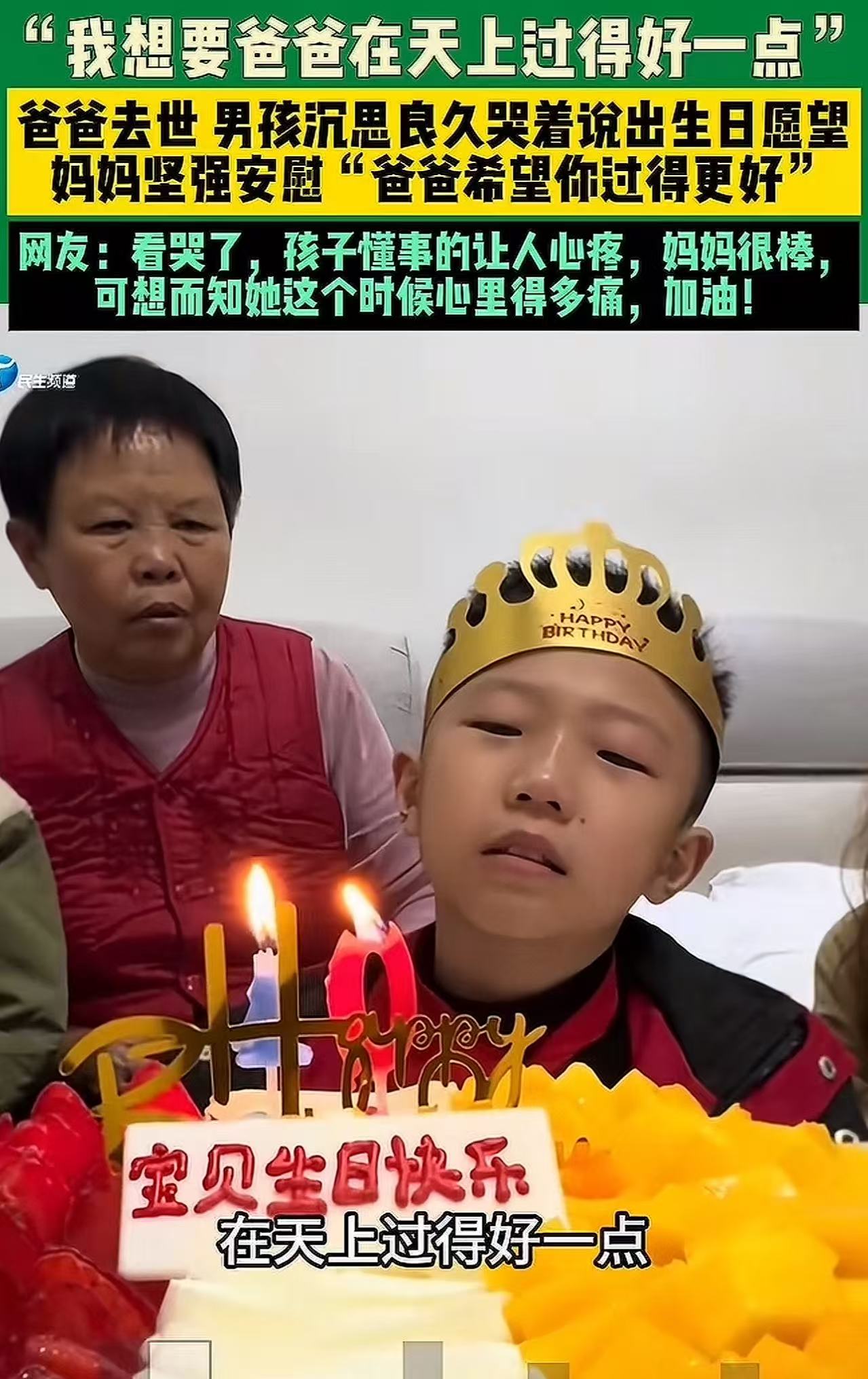 看哭了!湖南,妈妈给儿子过生日,儿子许的愿望,让人听了眼泪直流!儿子:“我想要爸爸在天上过得好一点……”网友:孩子的一句话,把我一个快50岁的男人说哭了!妈妈也很棒,可想而知她这个时候心里得多痛……