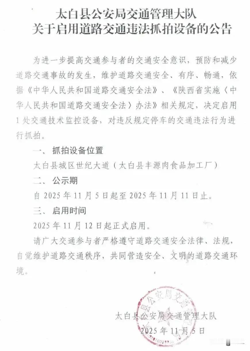 公告|宝鸡一地拟启用1处交通违法抓拍设备