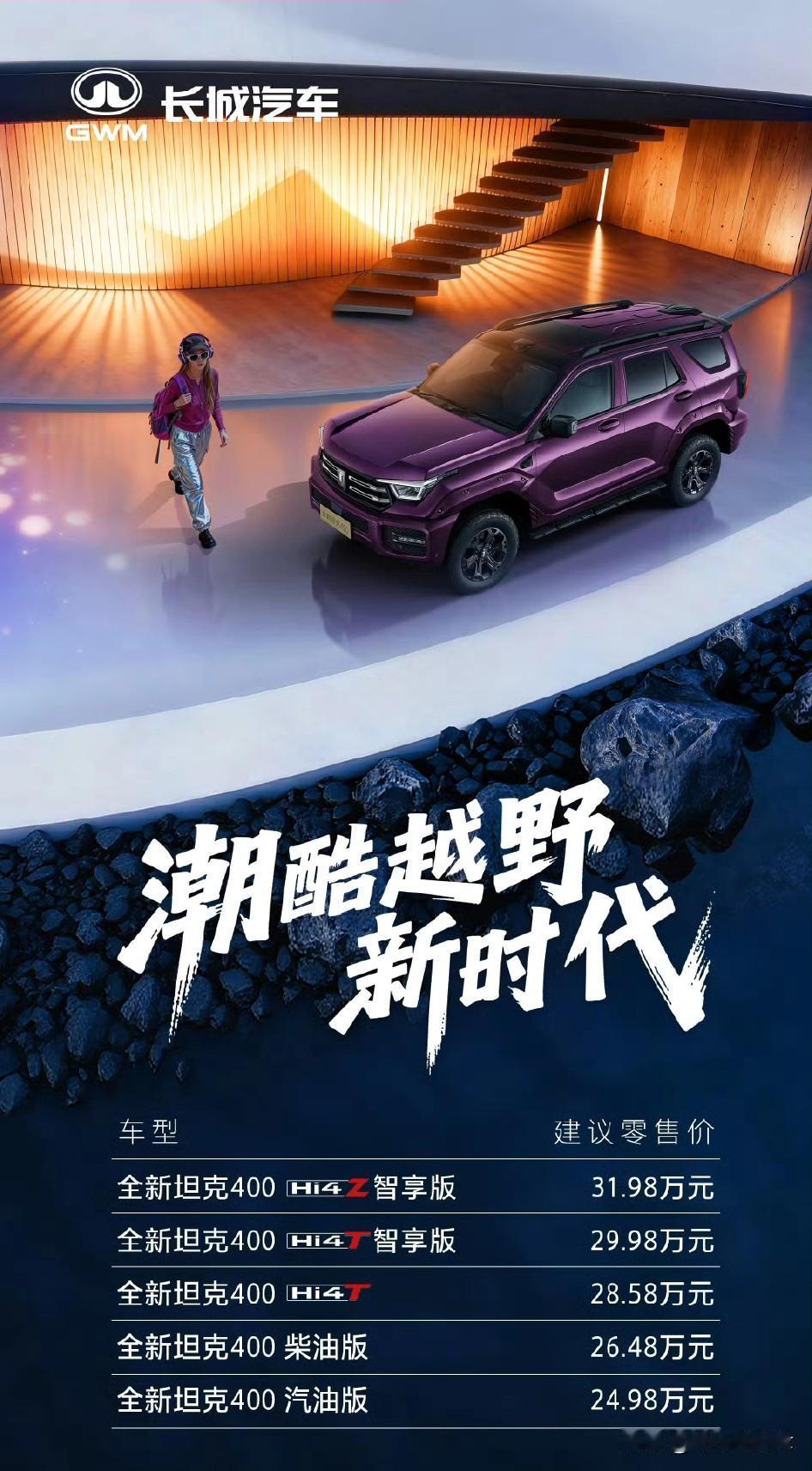 当传统越野遇上潮流电竞,会擦出怎样的火花?坦克400给出了惊艳答案,以24.98万起的售价强势来袭,开启了一场别开生面的跨界盛宴。 它就像个充满创意的“魔法师”。夸张点说,是拿着24.98万这把“魔法钥匙”,一键开启越野与电竞的异次元大门,又似“时空穿梭机”,载着消费者在传统越野的激情与潮流电竞的酷炫间自由狂飙。用文艺的表述,它是以24.98万为笔,绘就了一幅越野与电竞交织的梦幻画卷。 这场狂欢背后,是坦克400独特的破圈营销。车企大佬与电竞大神携手,彻底打破次元壁,让硬派越野不再是“中年男人的专属玩具”,而是成为年轻人的“社交货币”。 其产品力也不容小觑,入门即享高配,机甲美学外观吸睛,全场景性能强大,智能配置拉满。无论是城市通勤的精致感,还是周末越野的征服欲,亦或是电竞直播的科技感,它都能轻松满足。 24.98万的坦克400,究竟凭借什么让越野和电竞都为之疯狂?又会给市场带来怎样的持续影响?不妨走进这场狂欢,亲自探寻答案。