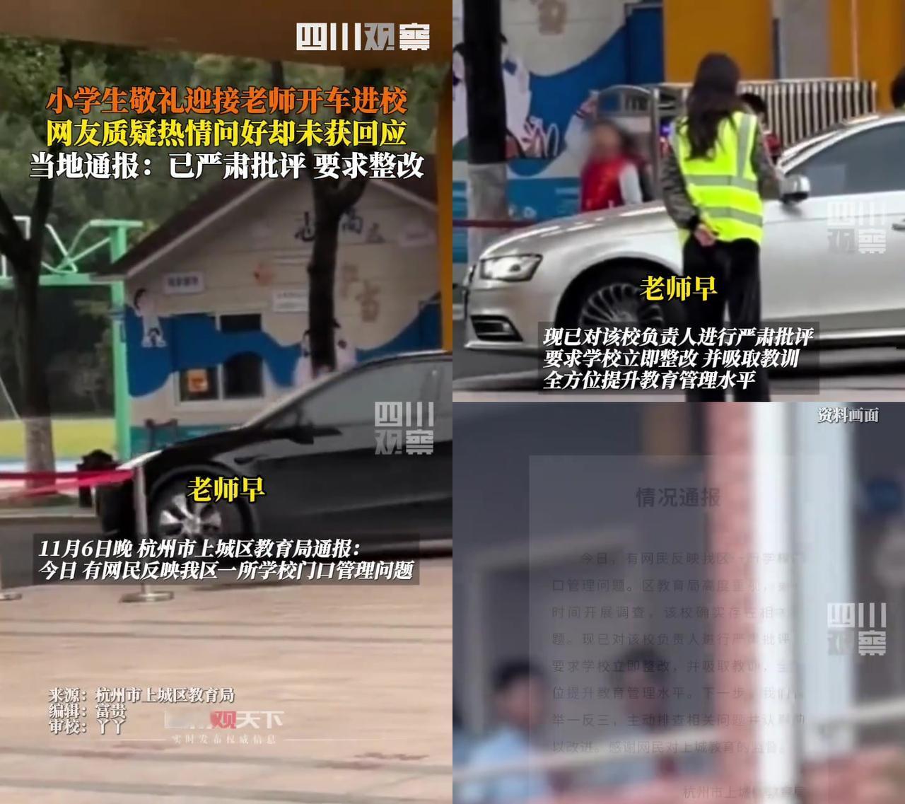 小时候抢着站校门的举个手! 我三年级举着小红旗,见老师就敬队礼喊“老师好”,觉得自己是校园小卫士,选上能得瑟一礼拜! 可杭州这所小学的小卫士,咋变味了? 大清早列队站校门口,看老师开车进来,扯着嗓子喊“老师好”,结果老师连车窗都没摇,眼神都没给。 有人说“以前我们站校门是迎同学+老师,互相鞠躬问早;现在咋只迎老师开车?” 还有人说“当年喊老师好是真心觉得亲,现在孩子喊的,像给领导打招呼”。 我们尊重老师,是因为老师教知识陪我们长大,但尊重从来不是单向的啊! 孩子的热情该被回应,仪式感是暖的,站校门是学礼貌,不是学当家丁。 你小时候站过校门吗?现在看这事儿,你觉得仪式感该是啥样? 是孩子真心喊“老师好”,还是老师也笑着回一句“早啊,宝贝”?