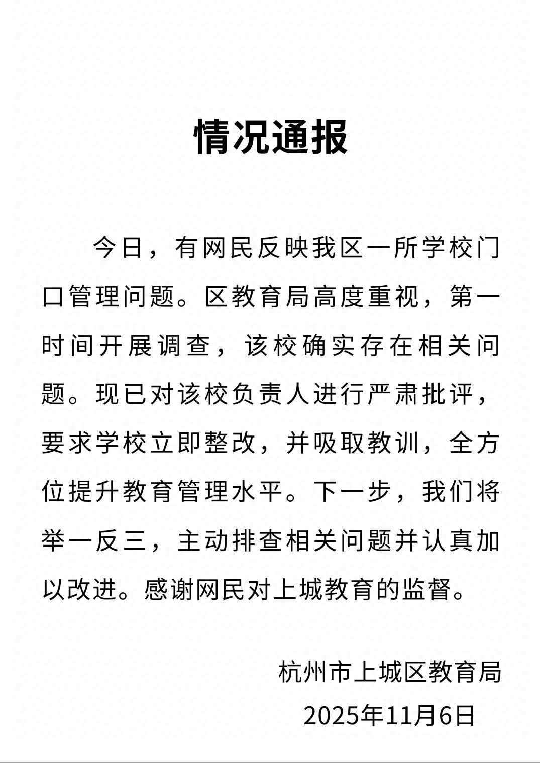 打脸来得太快!浙江杭州某小学门口,老师开车进校门时,学生列队大喊:“老师早”,进来一辆车就喊一次!短短50秒的视频里,进了10辆车,学生们喊了10次:“老师早”!网友吐槽:我把老师当园丁,老师把我当家丁! 看完杭州某小学门口的 50 秒视频,真的让人心里堵得慌。 十辆教师车缓缓开进校门,列队的孩子们机械地重复着 “敬礼”“老师早”。 一遍又一遍,足足喊了十次。 孩子们的声音越喊越沙哑,小脸憋得通红,可车内的老师大多只是侧头瞥一眼。 有的甚至没摇下车窗,仿佛这场 “致敬” 和自己毫无关系。 这段视频发到网上,瞬间引发了全网热议。 更让人无语的是校方的三次回应,一次比一次离谱。 一开始态度强硬,说视频是 “恶意剪辑”,还声称已经报警。 不到 24 小时,说法就变了,说学生是 “自发问好”,老师都会 “招手回应”。 直到官方介入通报,学校才不得不低头,承认存在问题,承诺会整改。 这种前后矛盾的 “危机公关”,反而暴露了最不该有的问题 —— 缺乏真诚。 作为教育者,连正视错误的勇气都没有,怎么教孩子诚实? 这场景勾起了很多人的童年回忆。 一位网友说,三十年前他上小学时,老师每天清晨都站在校门口。 不是等着接受问候,而是主动微笑着帮孩子们整理红领巾。 轻声问一句 “早饭吃了吗”,语气里满是关心。 那时的 “老师好”,是孩子们发自内心的问候。 源于日复一日的温情互动,而不是规定好的 “表演”。 教育本该是平等的互动,不是单方面的 “朝拜”。 当问好变成必须完成的任务,当尊重变成学生的义务,教育就变味了。 更让人担忧的是,这种仪式会给孩子留下什么印象? 会不会让他们过早懂得等级差异,而不是平等尊重? 其实事件里的老师也挺尴尬。 被安排在车里接受致敬,这种设置本身就破坏了师生关系的纯粹。 理想的校园里,老师应该走在学生中间。 和孩子们聊聊天,问问学习情况,而不是坐在车里当 “偶像”。 大家之所以反应这么强烈,是因为这件事戳中了对教育本质的期待。 学校是教书育人的地方,不该搞这些形式主义的排场。 多一些真心实意的关怀,少一些刻意安排的仪式。 多一些平等相待的互动,少一些上下分明的等级观念。 教育的真谛,从来不在浩浩荡荡的场面里。 而在课堂上的耐心讲解,在课后的细心辅导,在日常相处的点点滴滴中。 当老师真正走进孩子心里,赢得发自内心的尊敬。 那一声 “老师好” 自然会真诚又温暖,远比任何刻意安排都有意义。 你觉得这种列队敬礼的仪式有必要吗? 你心中理想的师生关系是什么样的? 信息来源:海报新闻