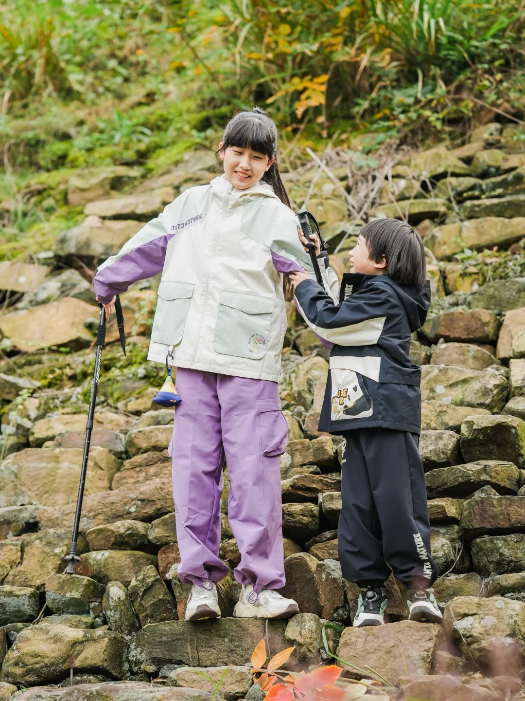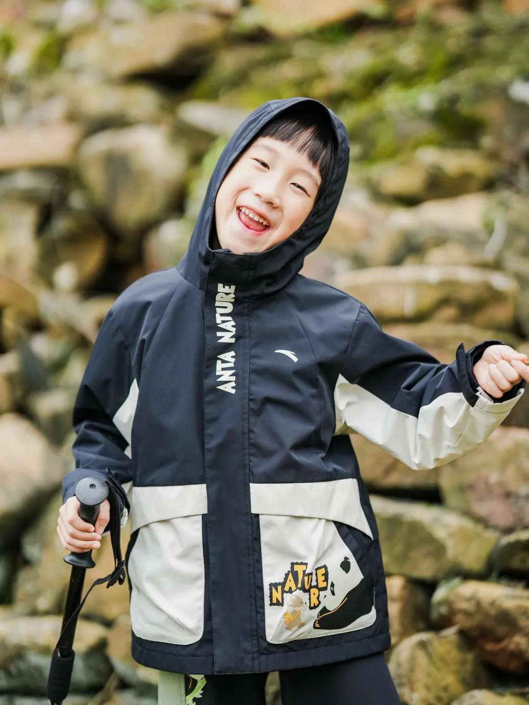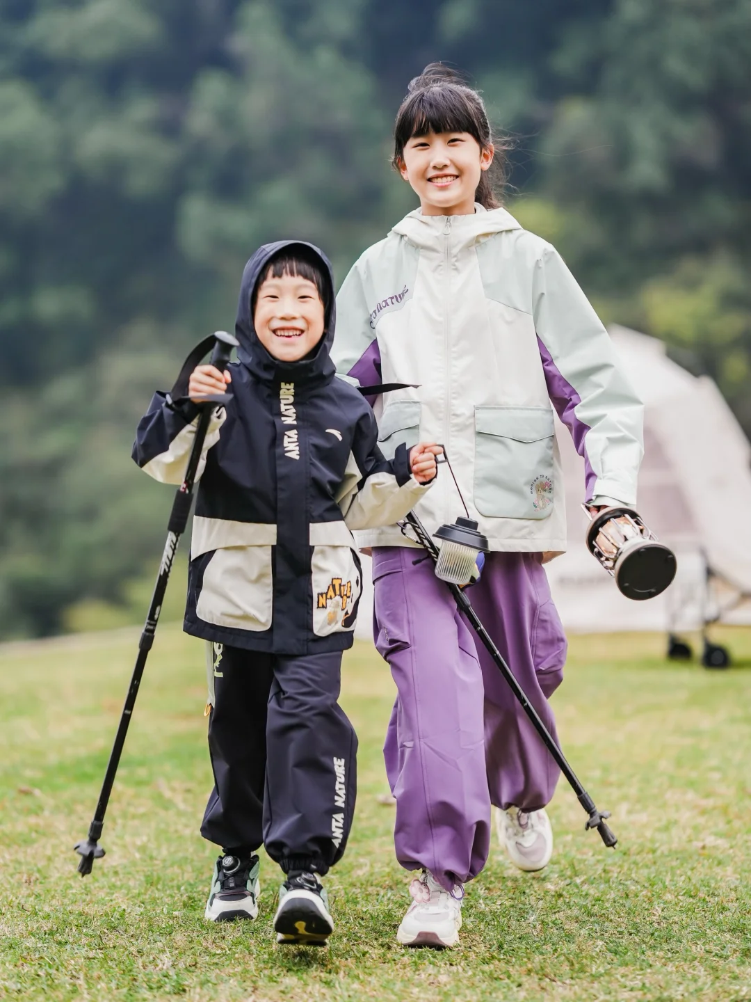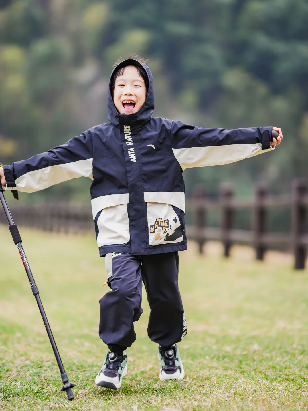 因为两个孩子穿着安踏儿童晴雨甲济南限定款,防风防泼水,又自带可拆卸的摇粒绒内里,令我足够放心~