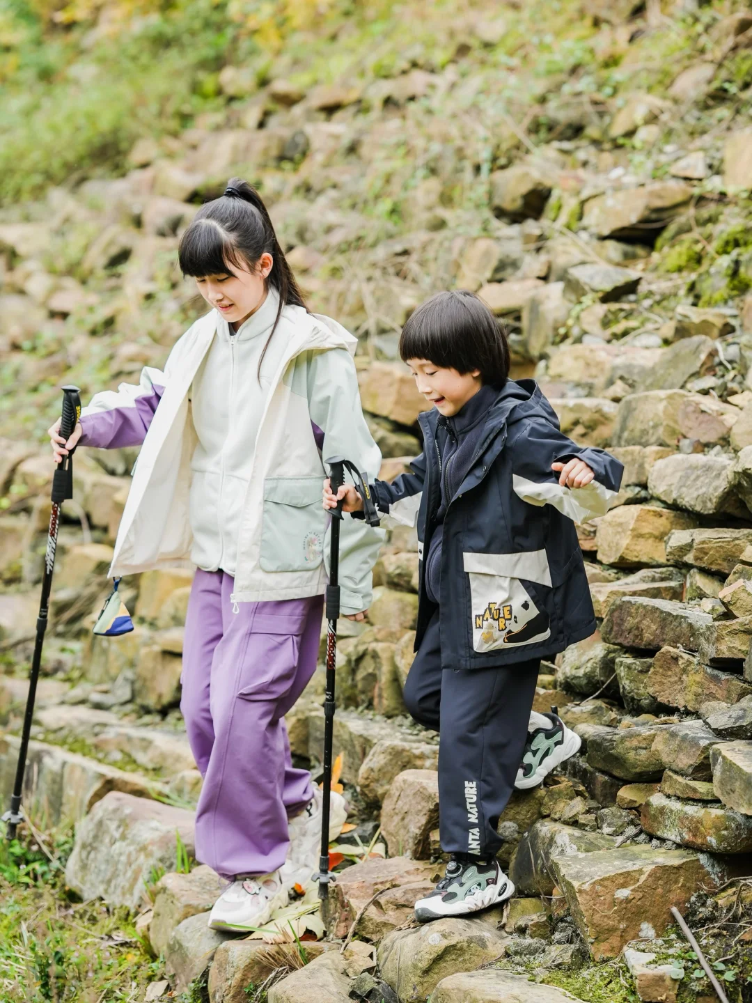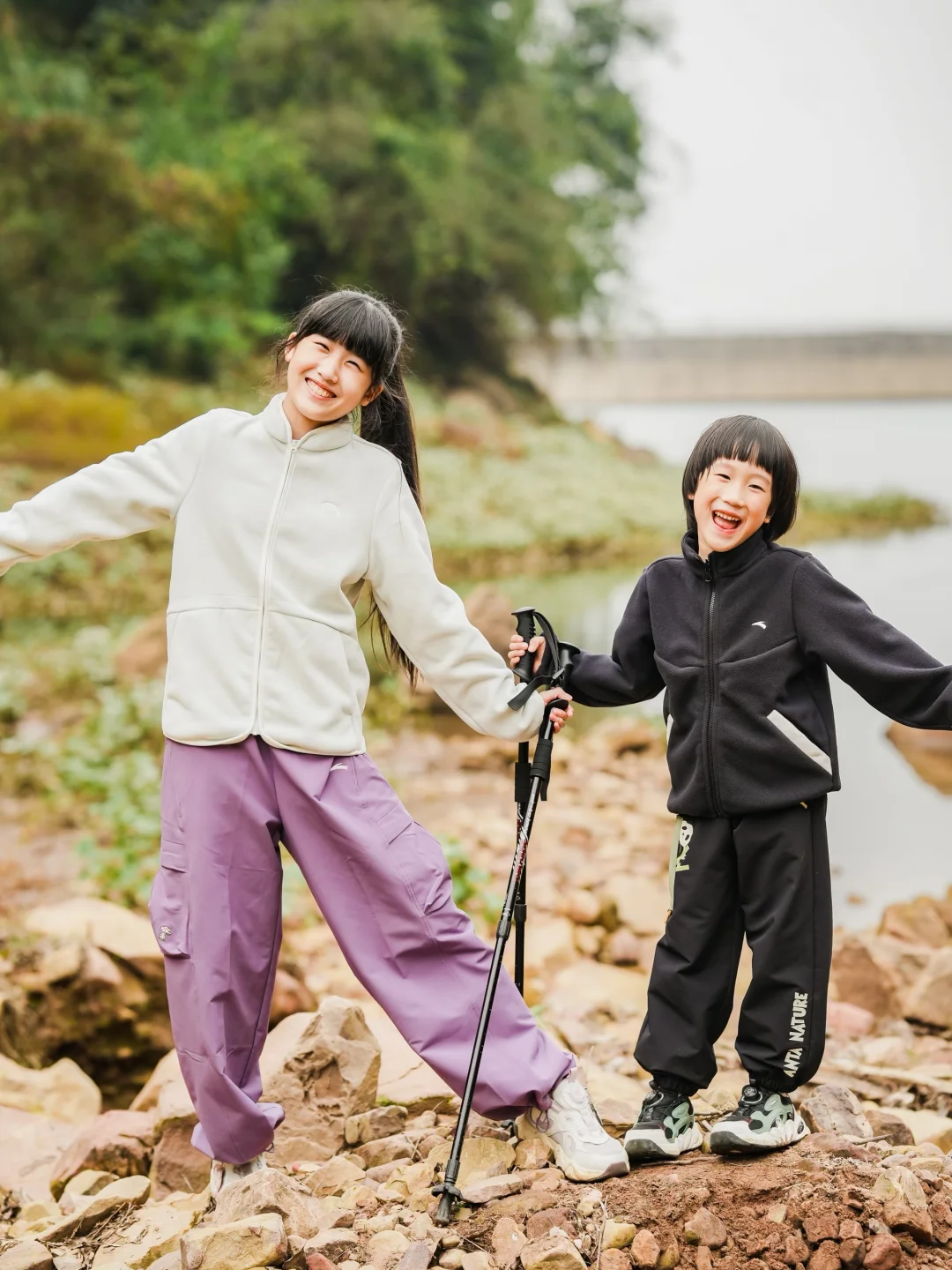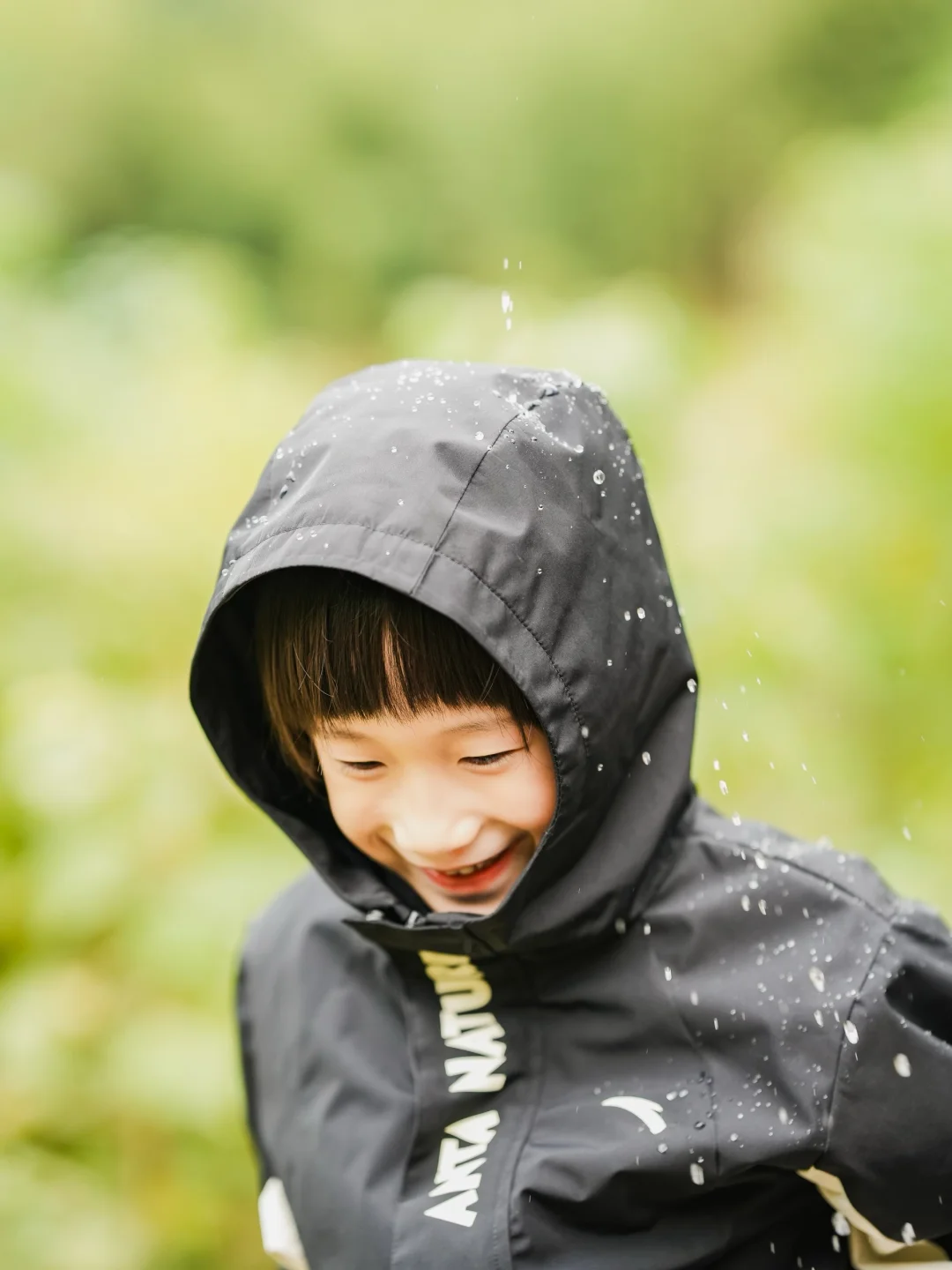 因为两个孩子穿着安踏儿童晴雨甲济南限定款,防风防泼水,又自带可拆卸的摇粒绒内里,令我足够放心~