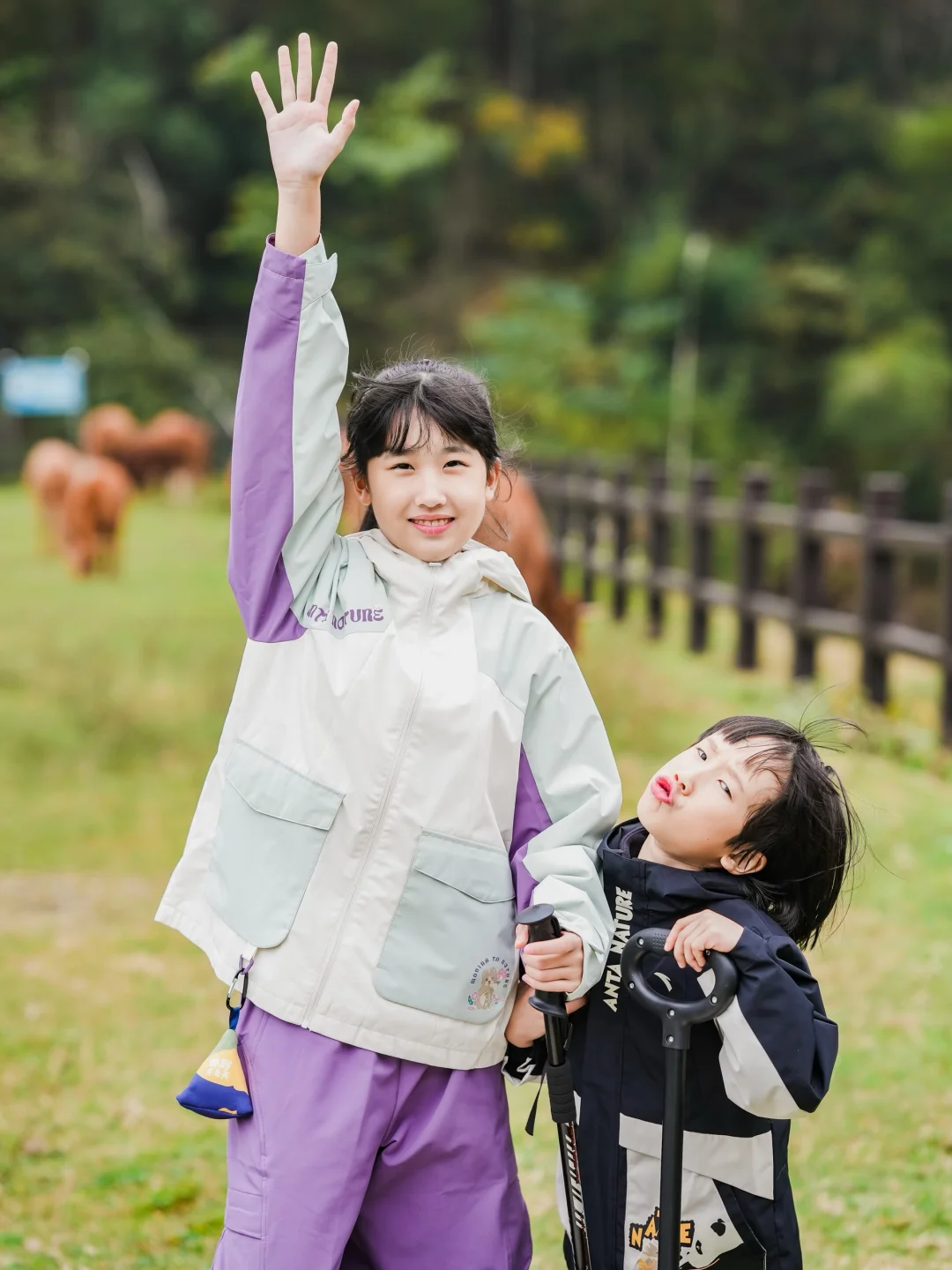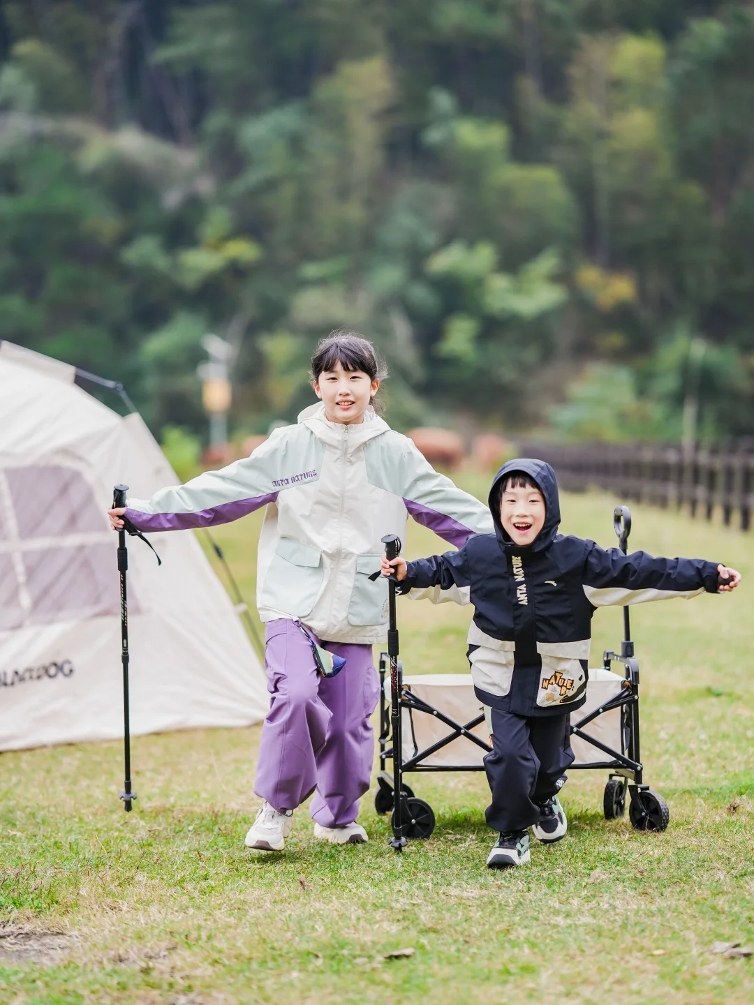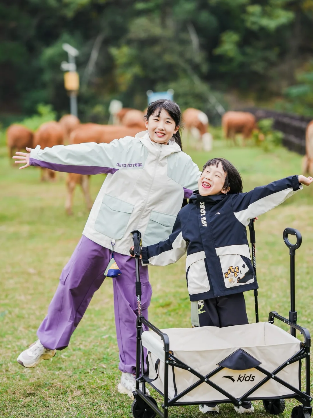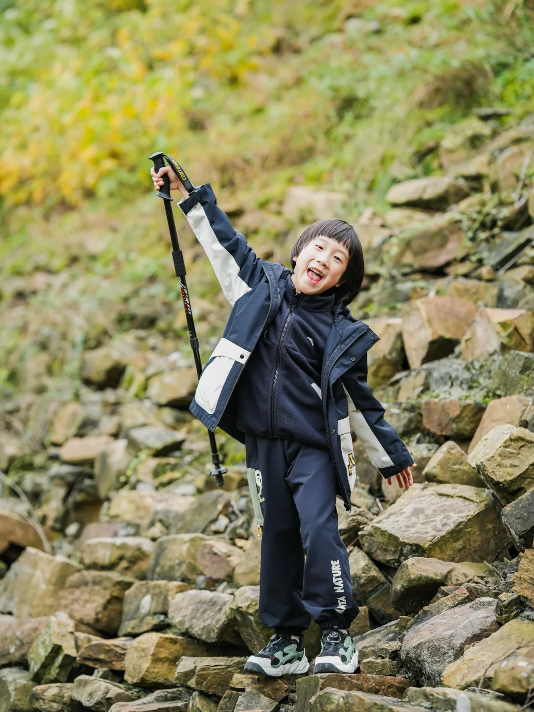 因为两个孩子穿着安踏儿童晴雨甲济南限定款,防风防泼水,又自带可拆卸的摇粒绒内里,令我足够放心~