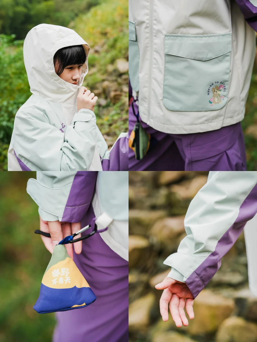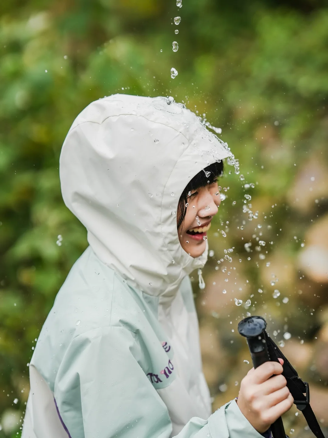 突然下雨,也根本不怕,儿童外套外层像是隐形小雨衣,鸭嘴帽檐还能稳稳挡雨,连刘海都不会淋湿✌️