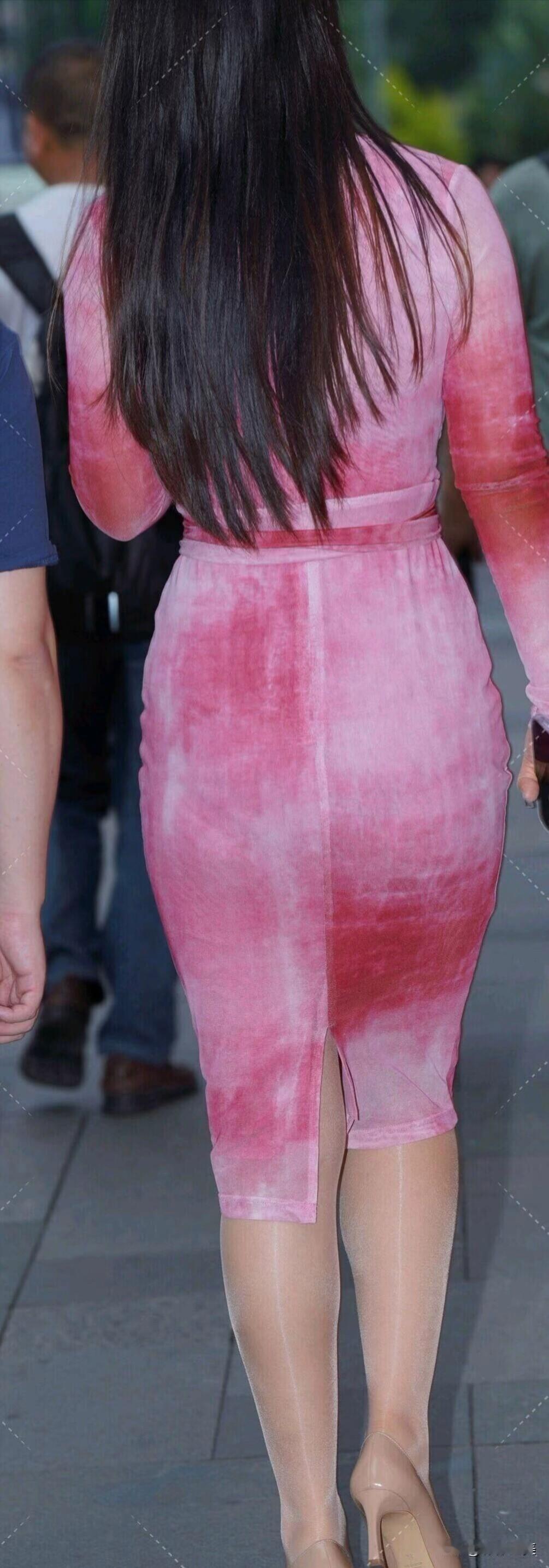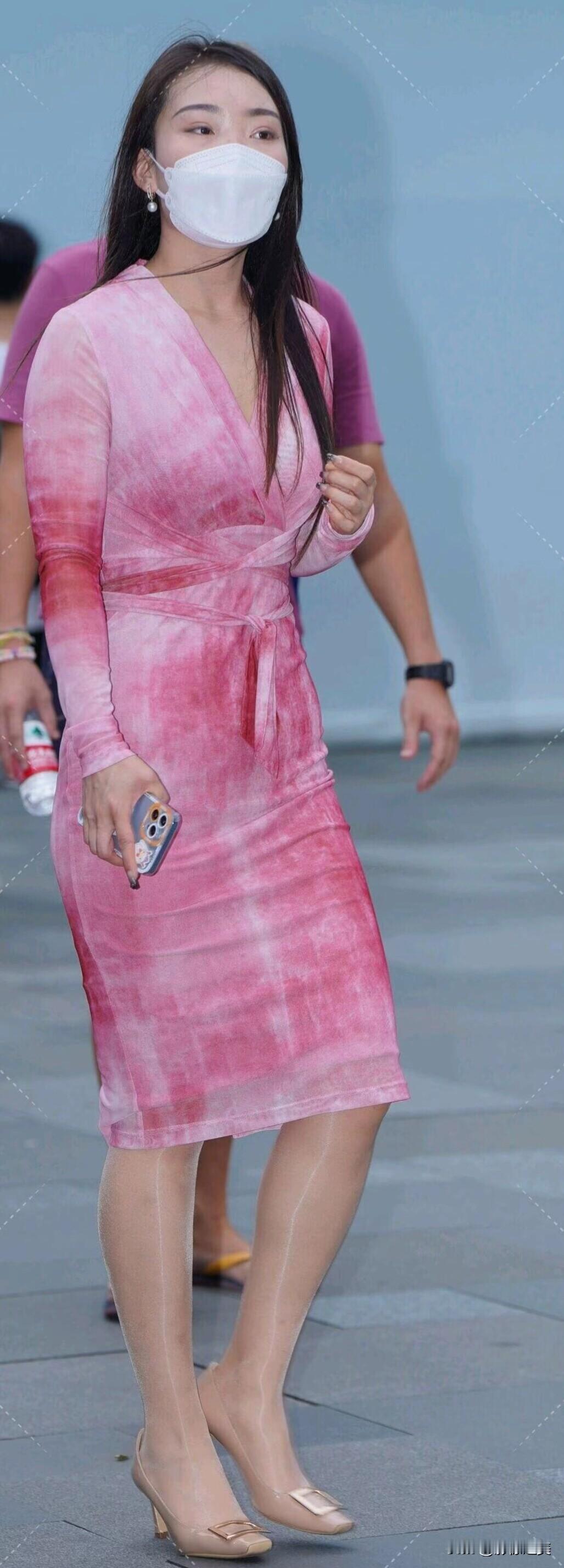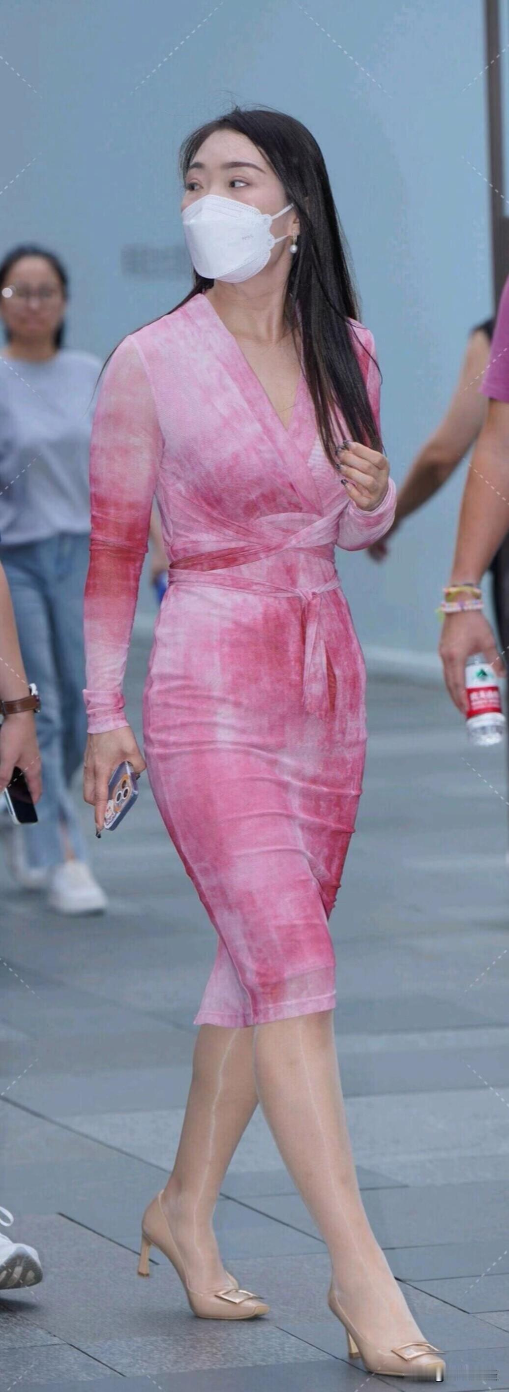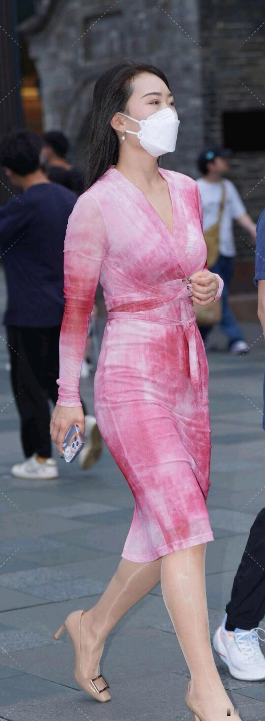 一袭粉色渐变连衣裙,配裸色高跟鞋,优雅又不失时尚。