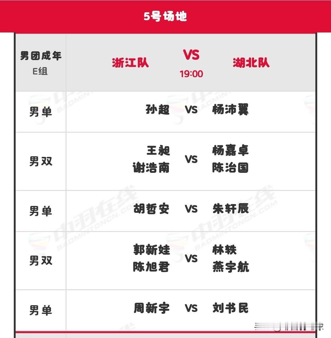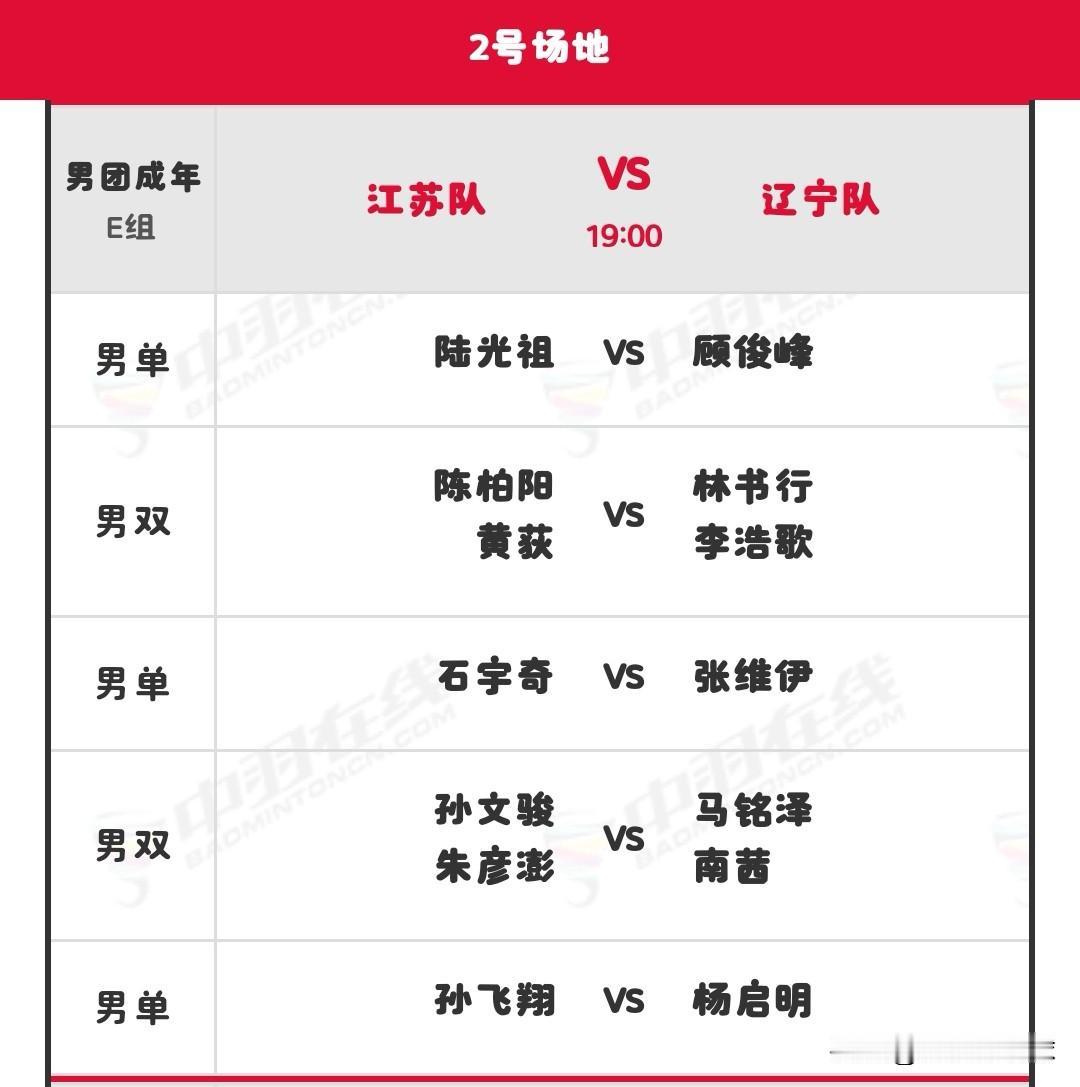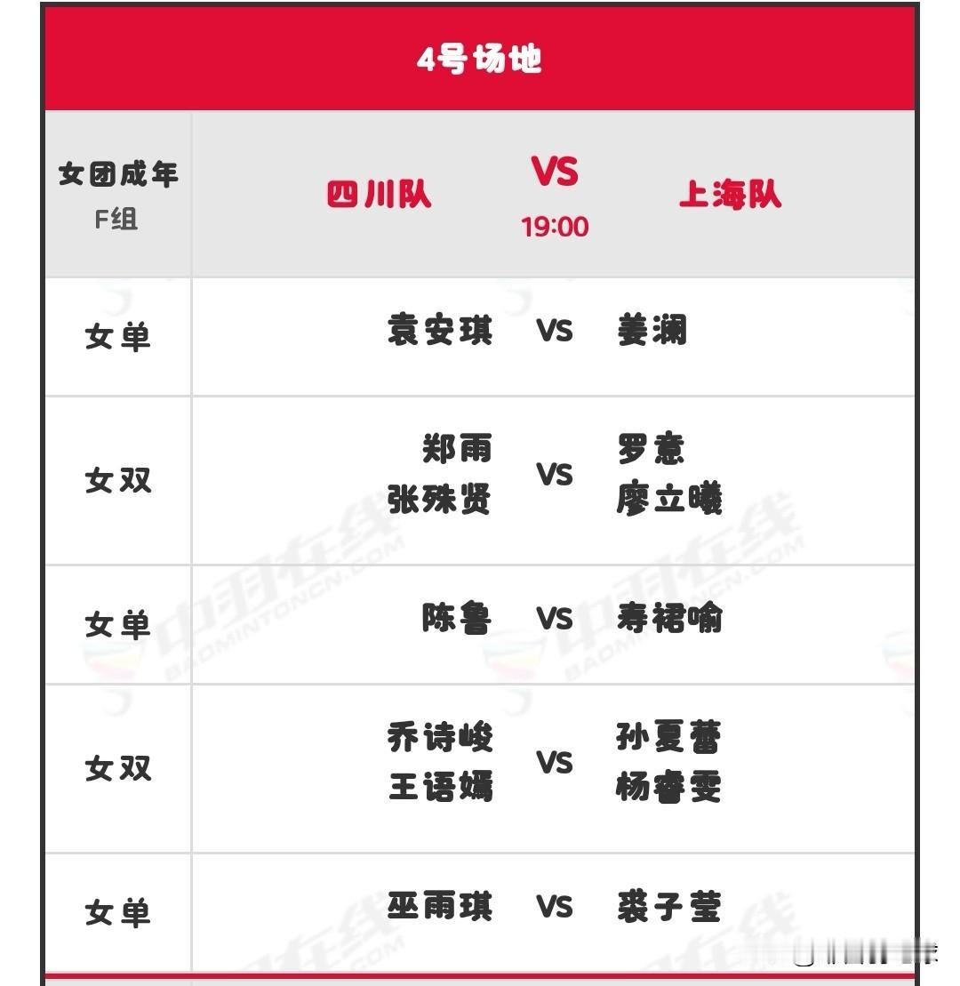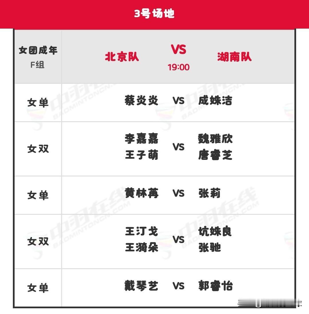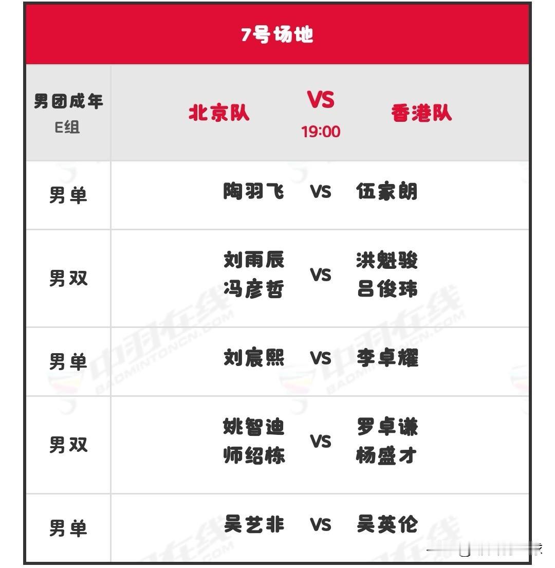 11月7日全运会羽毛球赛团体决赛晚场安排 晚场北京时间19:00开始,共有六块场地同时进行,详细对阵名单如下: 羽毛球 羽毛球爱好者 羽毛球比赛 羽毛球赛事 国羽 国羽加油 2025第十五届全运会