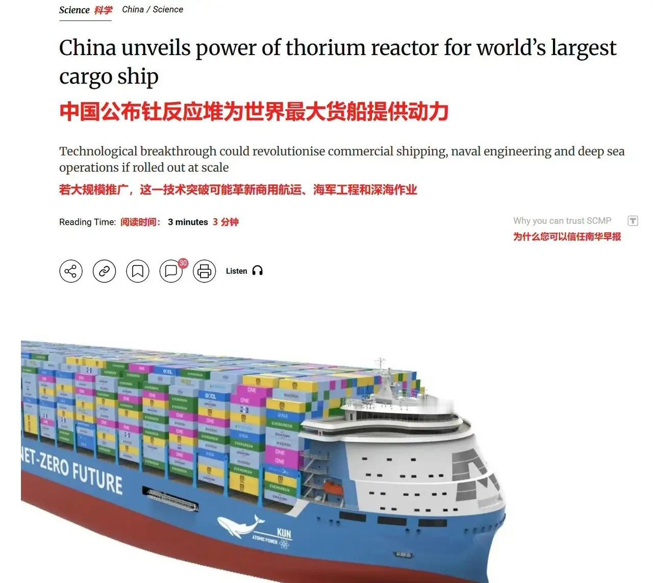 个人观点,中国的004号航母没必要上核动力,可以上福建舰的姊妹舰。两艘同款航母有很多好处。模块生产线比较成熟,能够省时省力省钱的建造出来。如果未来需要封存或者退役,两艘模块相同,可以拆补出来一艘状态更好的。 我们短期内对核动力航母的需求并不急切,而且就算用核动力,编队的其他舰艇不是核动力,那活动范围依然有限。目前我们已经掌握了独步全球的钍反应堆核技术,并且应用在25万吨的大型货轮上。不如再打磨几年,到时候航母直接上钍反应堆。 钍也是从矿产上分离出来的,目前我国探明的矿产能分离出大约28万吨钍,世界第二。印度是世界第一,大约有35万吨,不过他的分离技术不行。1吨钍裂变产生的能量相当于 200吨铀,未来我们的核电站等领域肯定是用钍,铀需要进口,钍可以自给自足,用个成千上万年没啥问题。