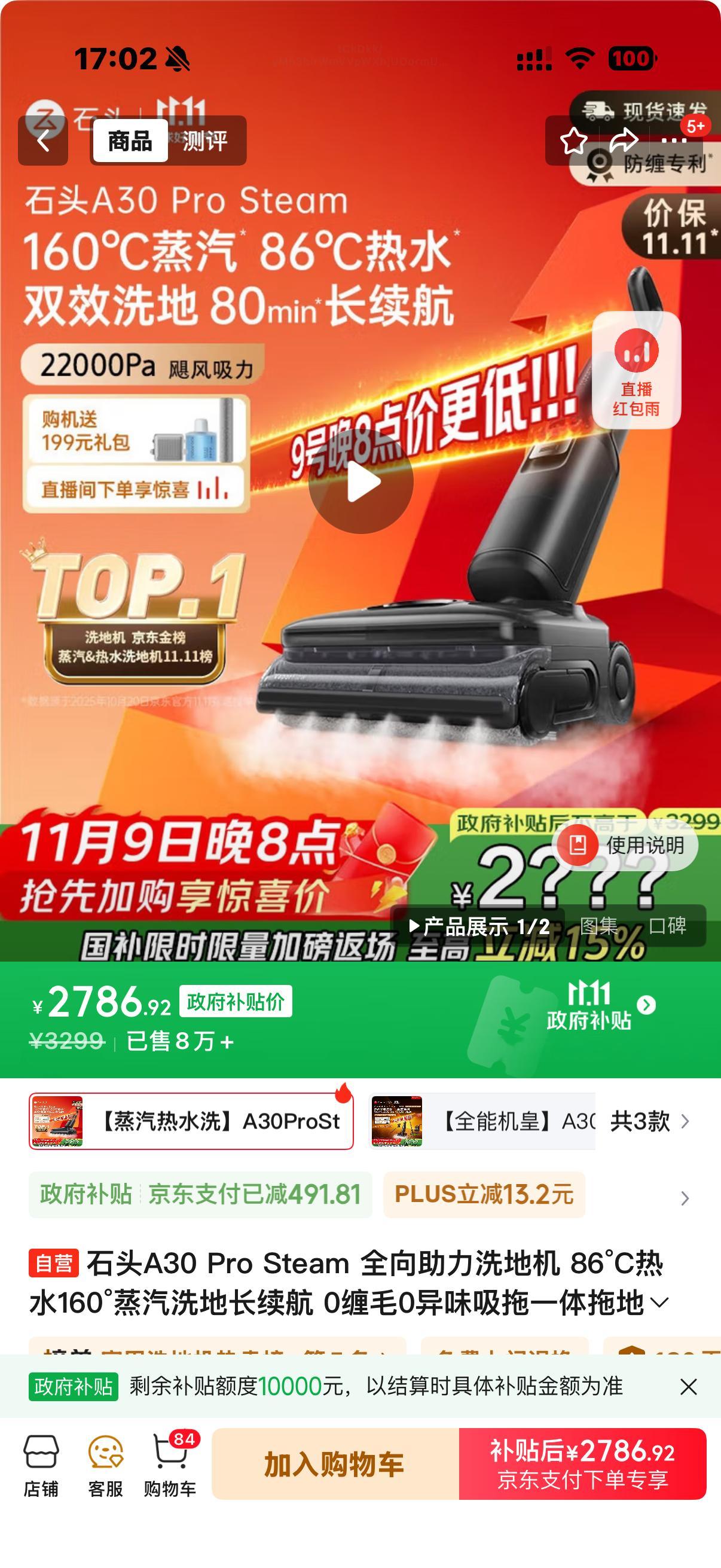 双十一家电是不是变贵了家电OK购 看到这个话题,我看了下今年3月的时候首发冲了石头的洗地机(型号是:A10 Pro Sterm)首发到手是2789,我记得当时还有返红包来的,最终到手就2.5的样子。然后我刚刚进去看双十一优惠,叠加补贴还是2.7,这也没便宜啊emmm...对比首发还涨了???