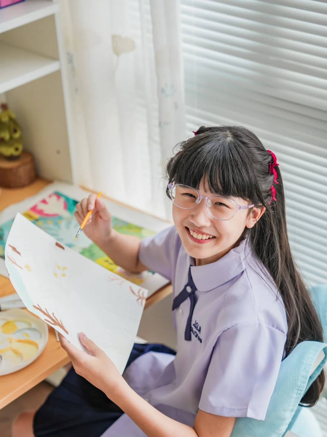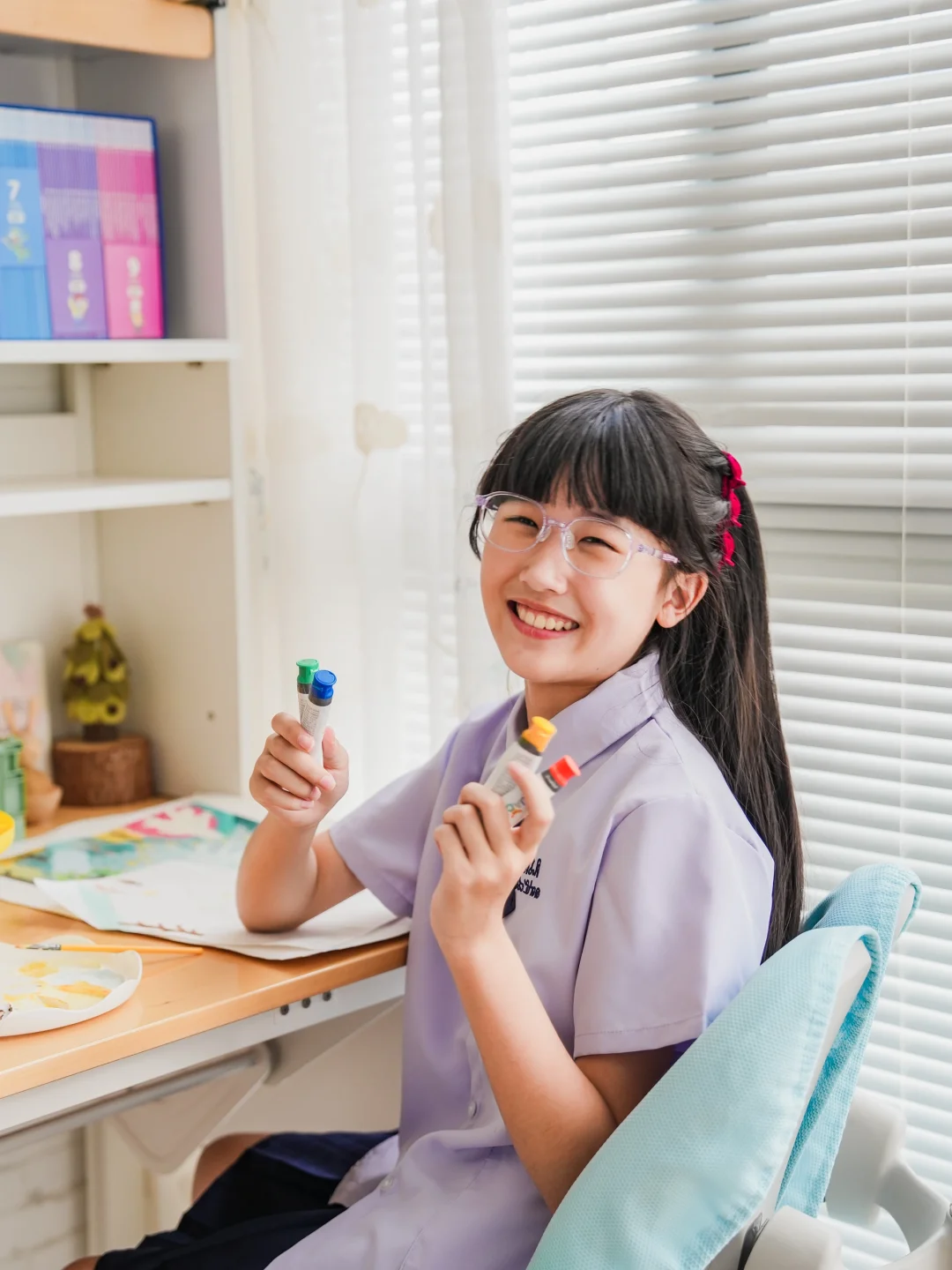 姐姐喜欢看书、画画,阴天在家里书桌前画画、图书馆看书时,光线很不好,尤其是图书馆里忽明忽暗,这款眼镜配的是柔悦瞳镜片,能精准定位离焦区域,看那些很小的字体,都能看得很清晰,姐姐说眼睛都舒服多了😌