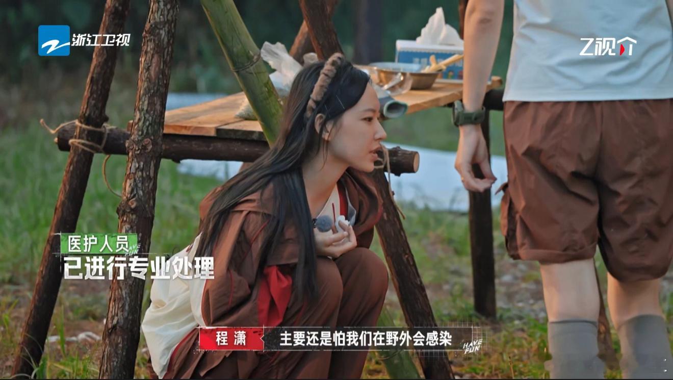 程潇被刀划伤手嗨放派 程潇在《嗨放派》第三期因切玉米被刀划伤了手指,节目组立即为她进行了专业处理,及时打针防止感染,提醒我们在野外活动时要特别注意刀具使用的安全性!