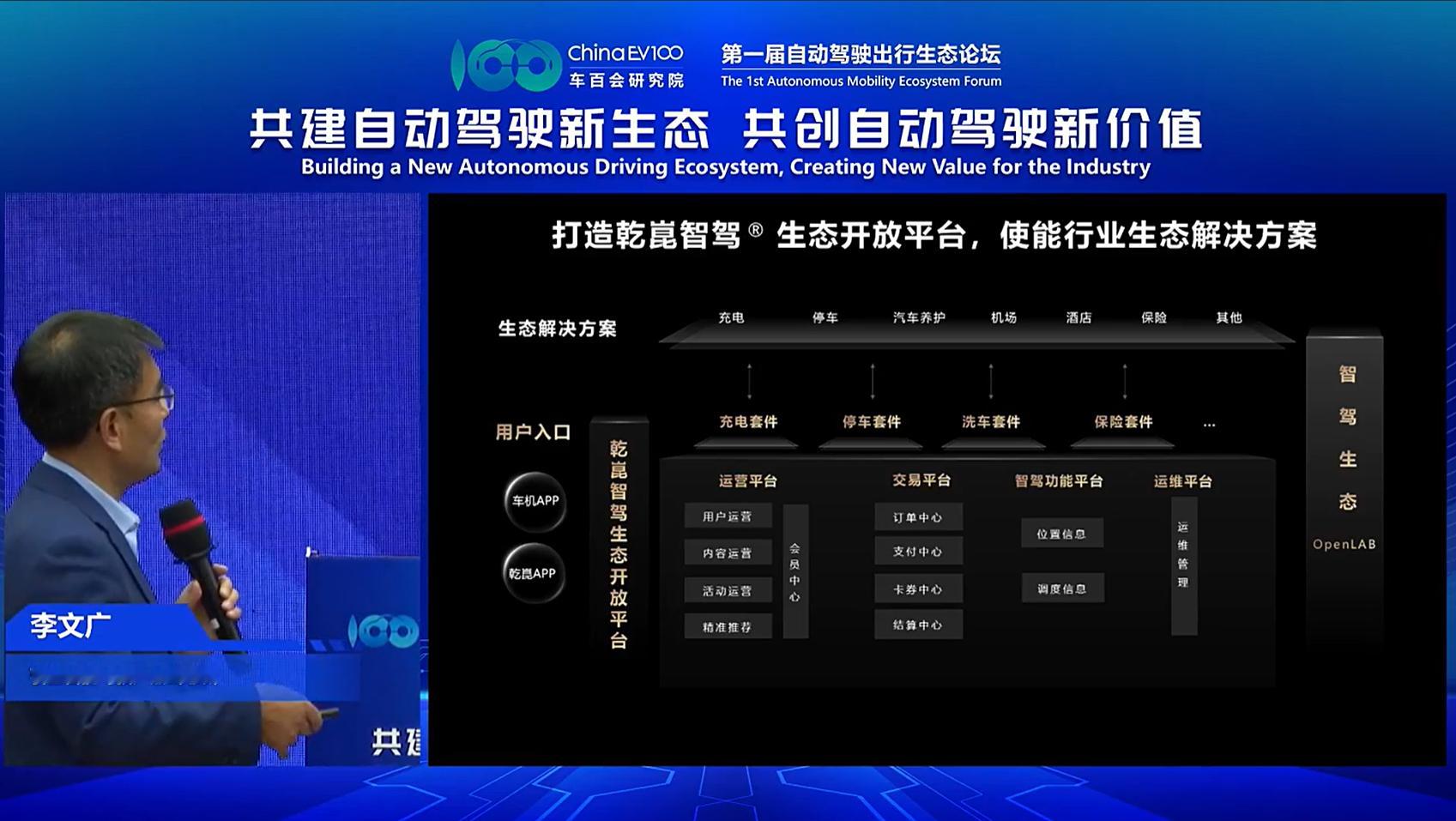 在今天的“第一届自动驾驶出行生态论坛”上,华为李文广还提出,要打造乾崑智驾生态开放平台,使能行业生态解决方案。